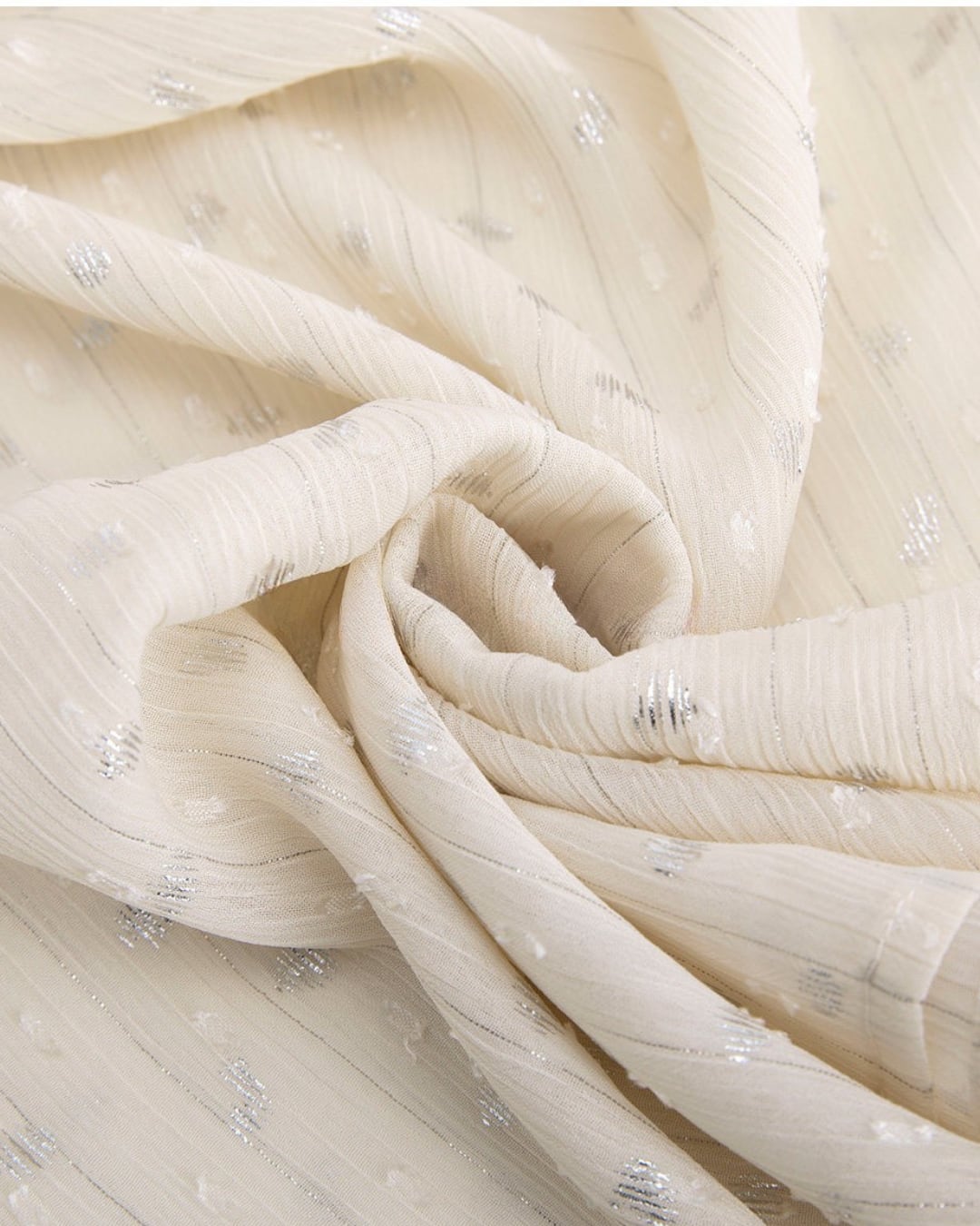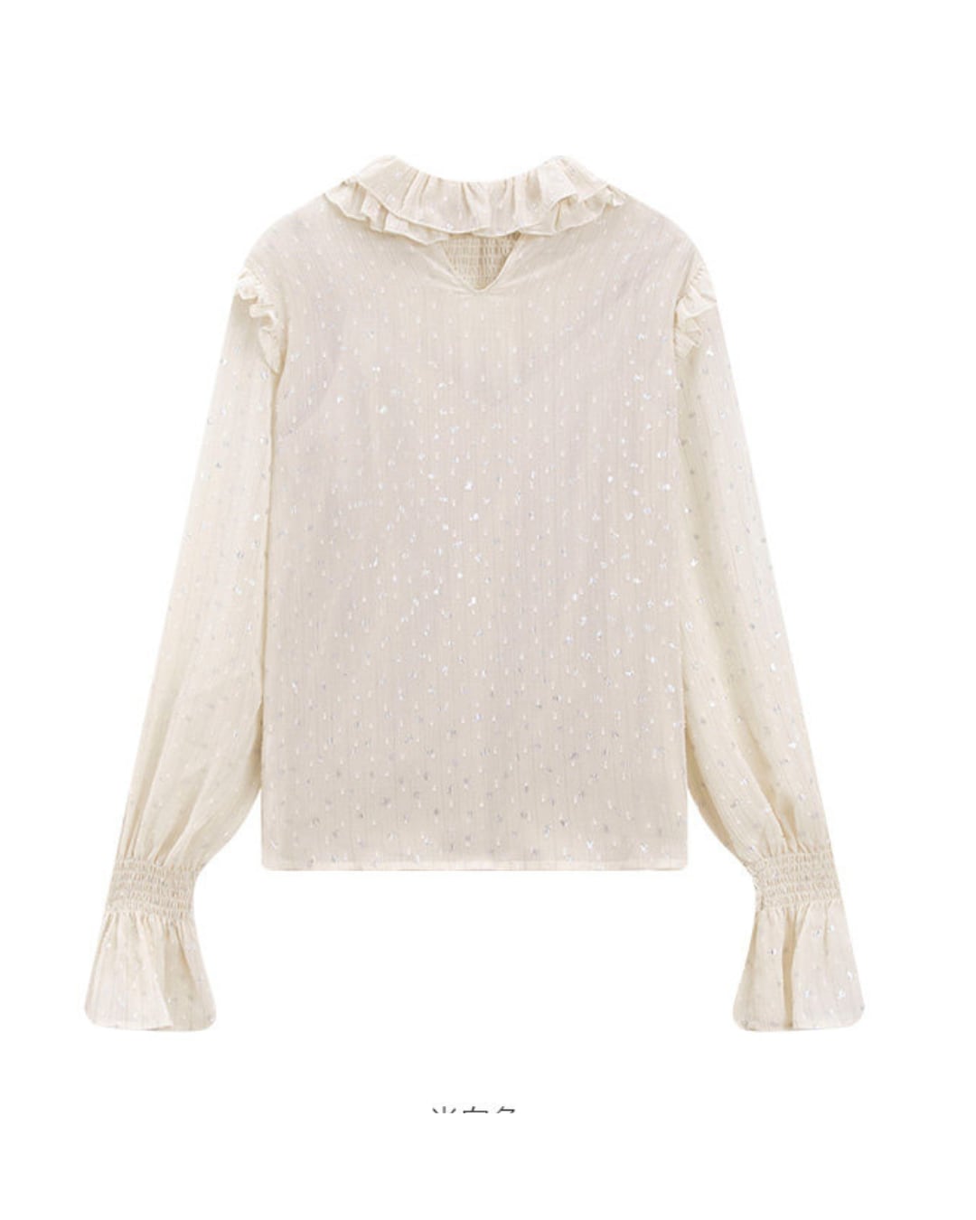 繊細なラメ感のある生地が上品に輝くブラウス。光の角度によってさりげなくきらめき、コーディネートに華やかさをプラスします。フリルのスタンドネックとフレアスリーブが女性らしい優雅な印象を演出。ほんのり透け感のある軽やかな素材で、デイリーからお出かけまで幅広く活躍する一枚です。