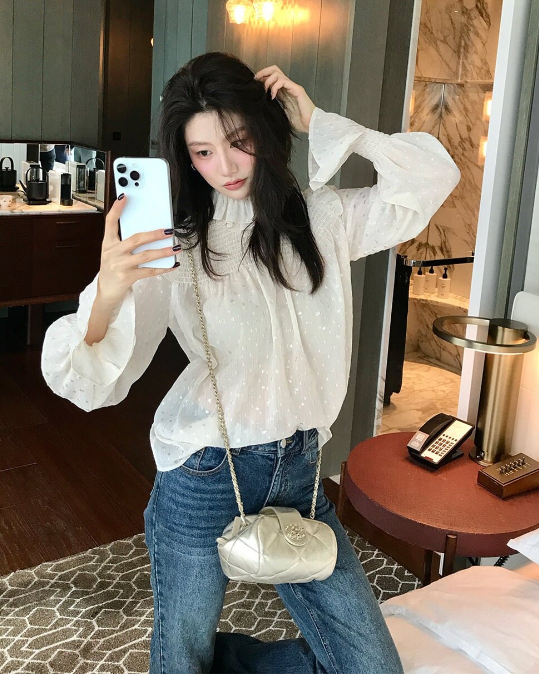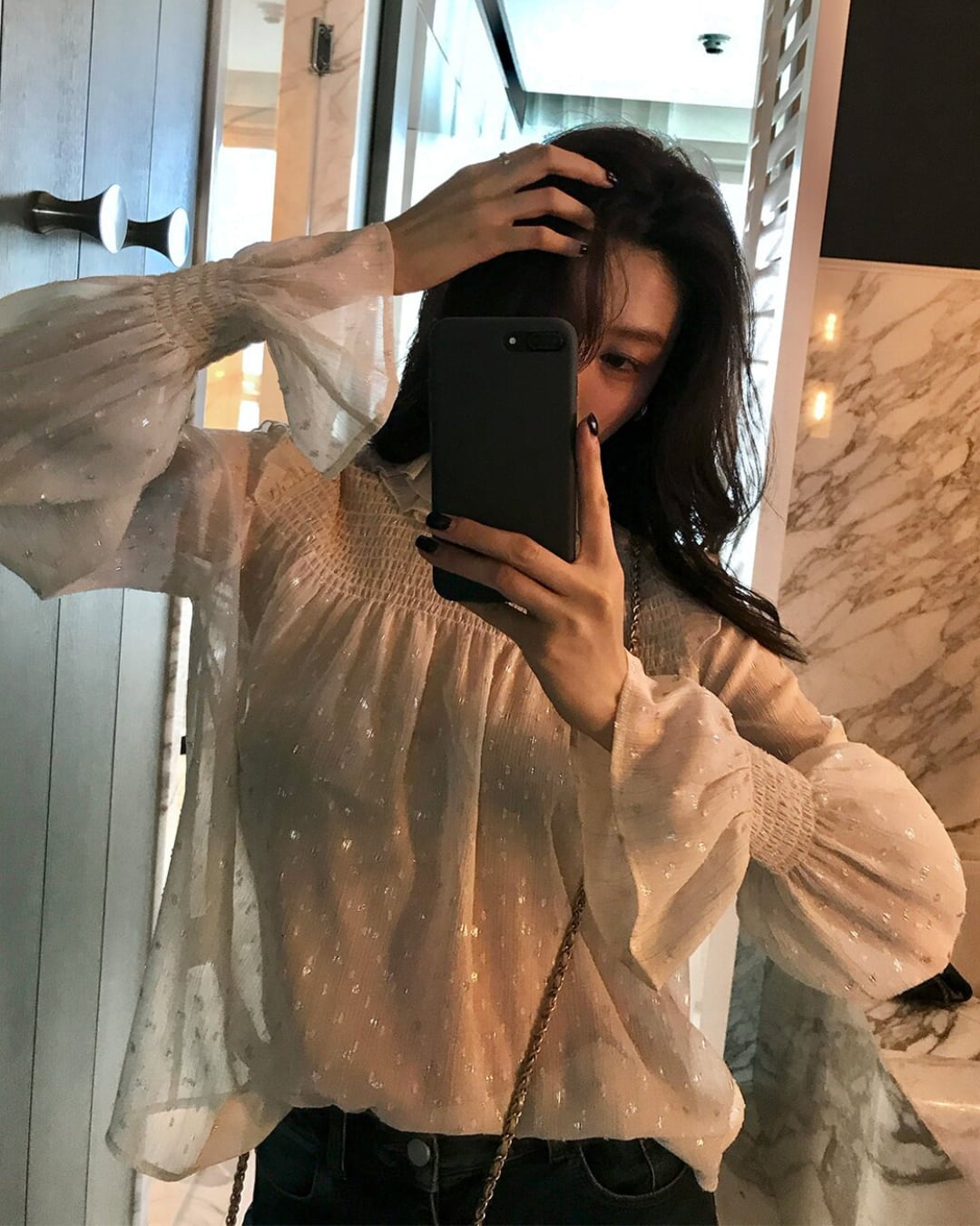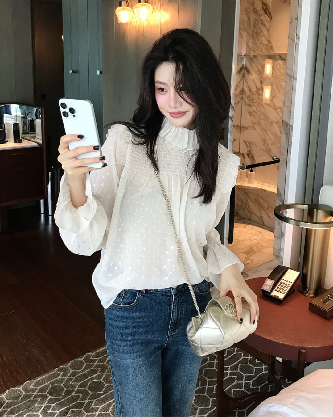 #ブラウス #フリルネック #シフォンブラウス #透け感 #フェミニン #上品コーデ #きれいめコーデ