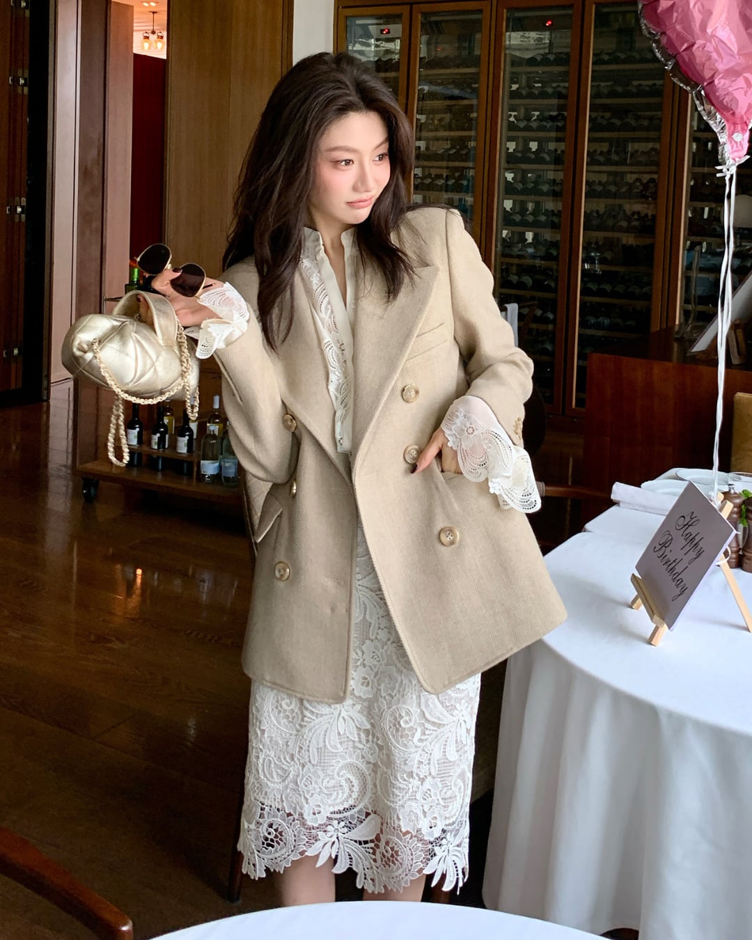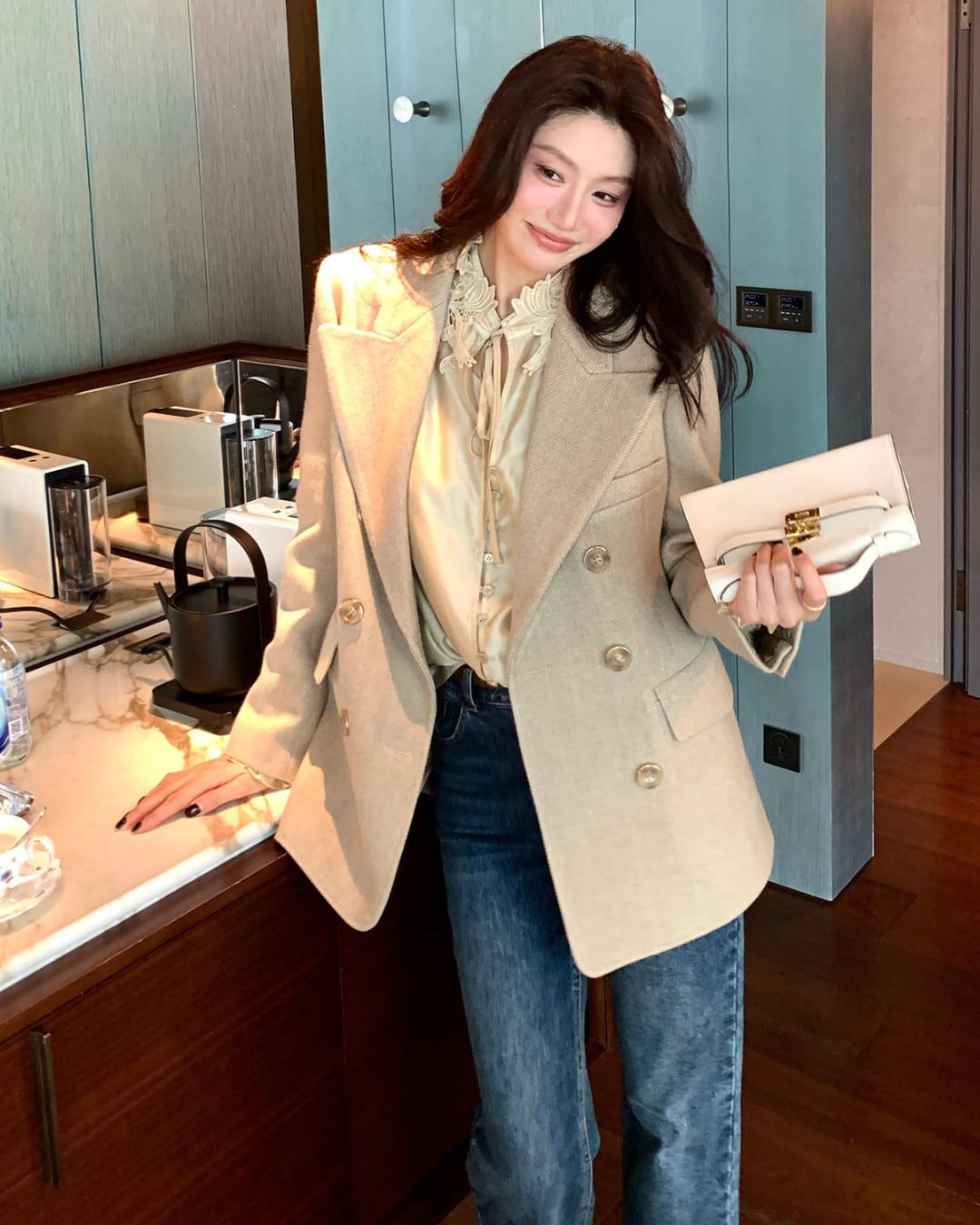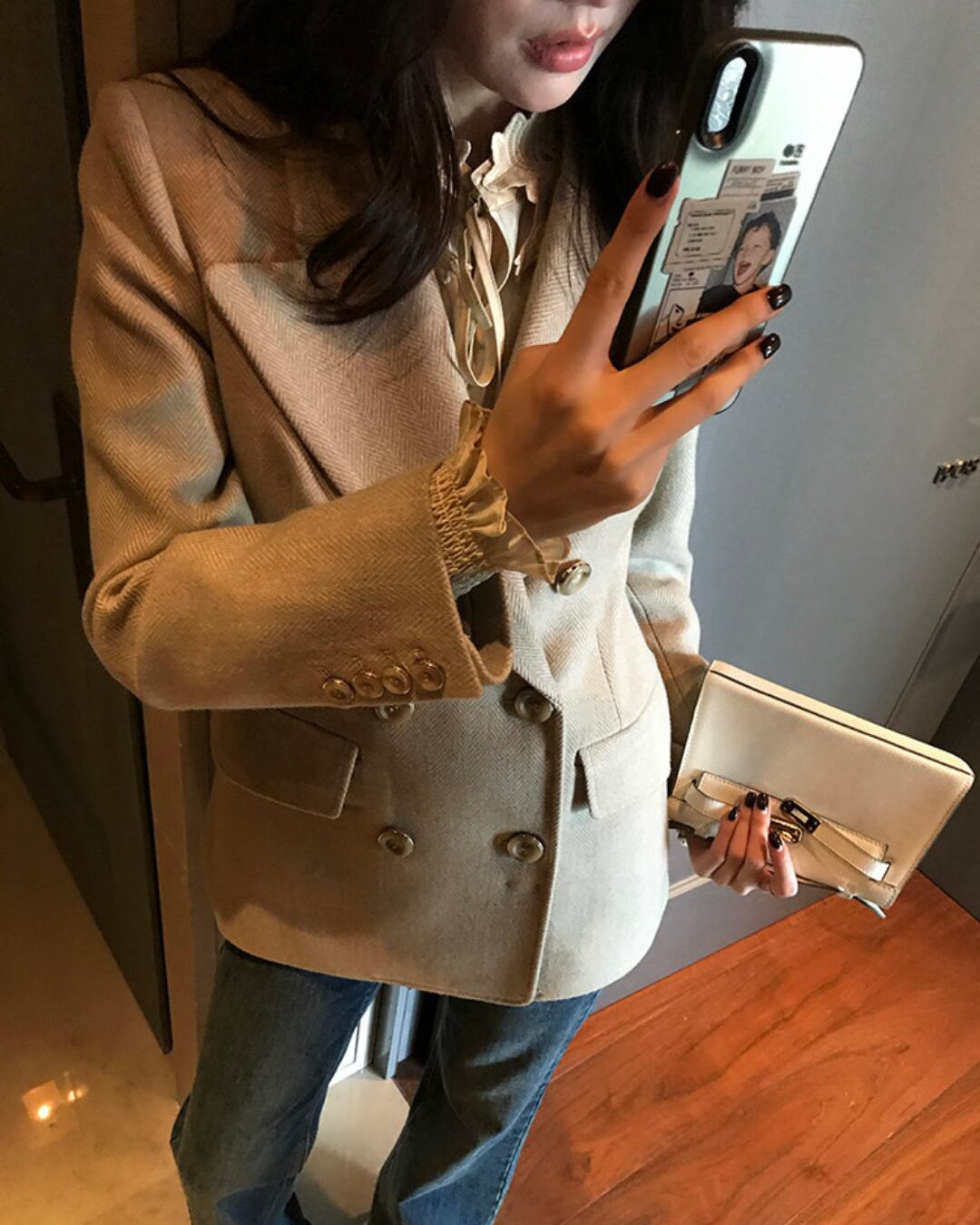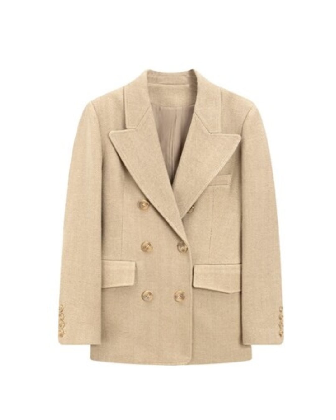 上品なヘリンボーン生地が印象的なテーラードジャケット。クラシックなダブルボタンデザインが、洗練された大人のスタイルを演出します。程よく構築されたシルエットで、きれいめにもカジュアルにも合わせやすい一着。ワンピースやデニムと合わせるだけで、上品なコーディネートが完成します。