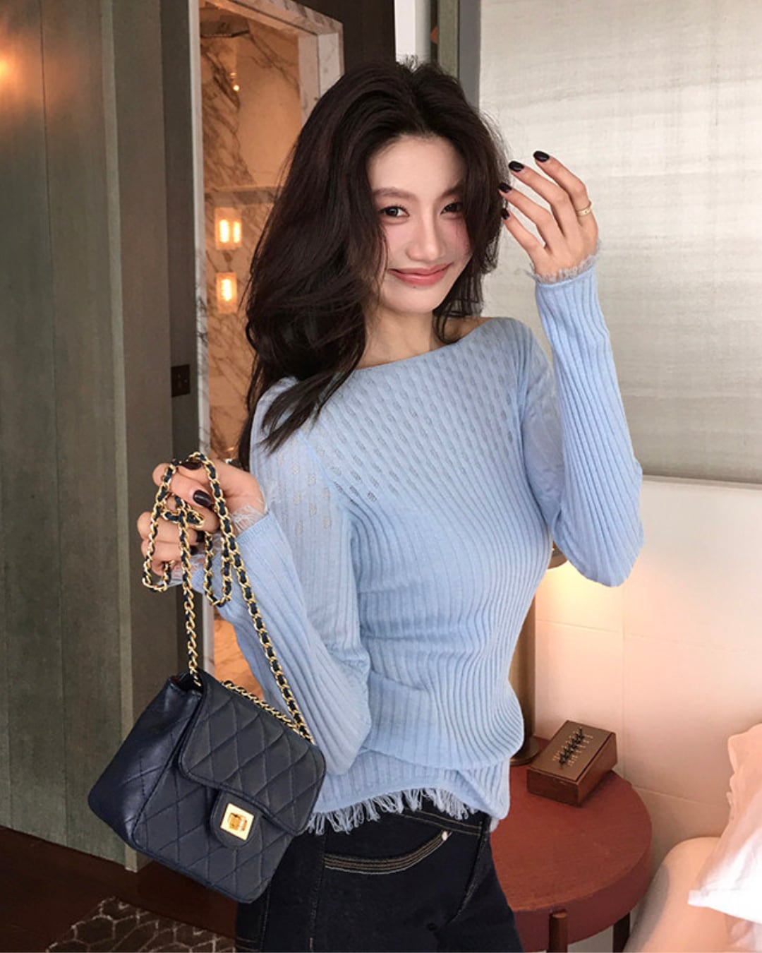 柔らかなリブ編み素材で仕立てたオフショルダーニットトップス。デコルテをきれいに見せるネックラインが女性らしい印象を演出します。身体に程よくフィットするシルエットで、すっきりとしたスタイリングに。一枚ではもちろん、ジャケットやコートのインナーとしても活躍する着回し力の高いアイテムです。