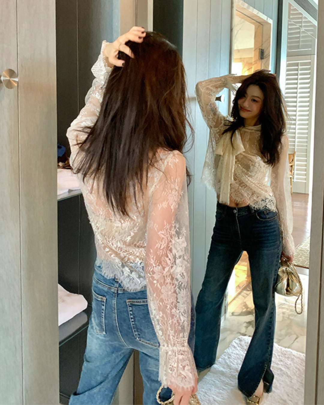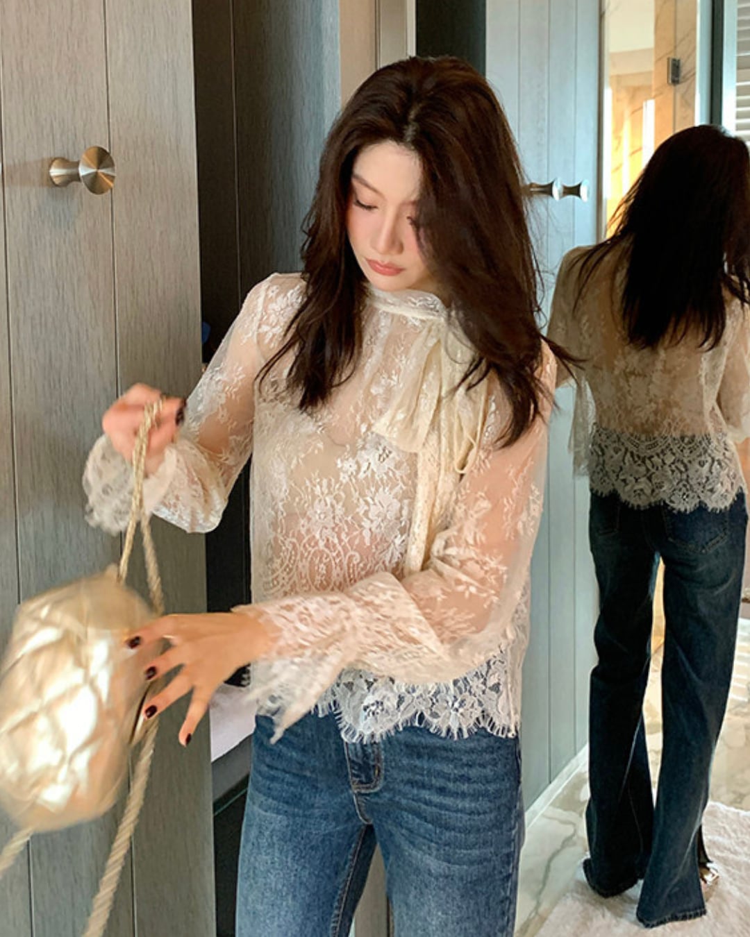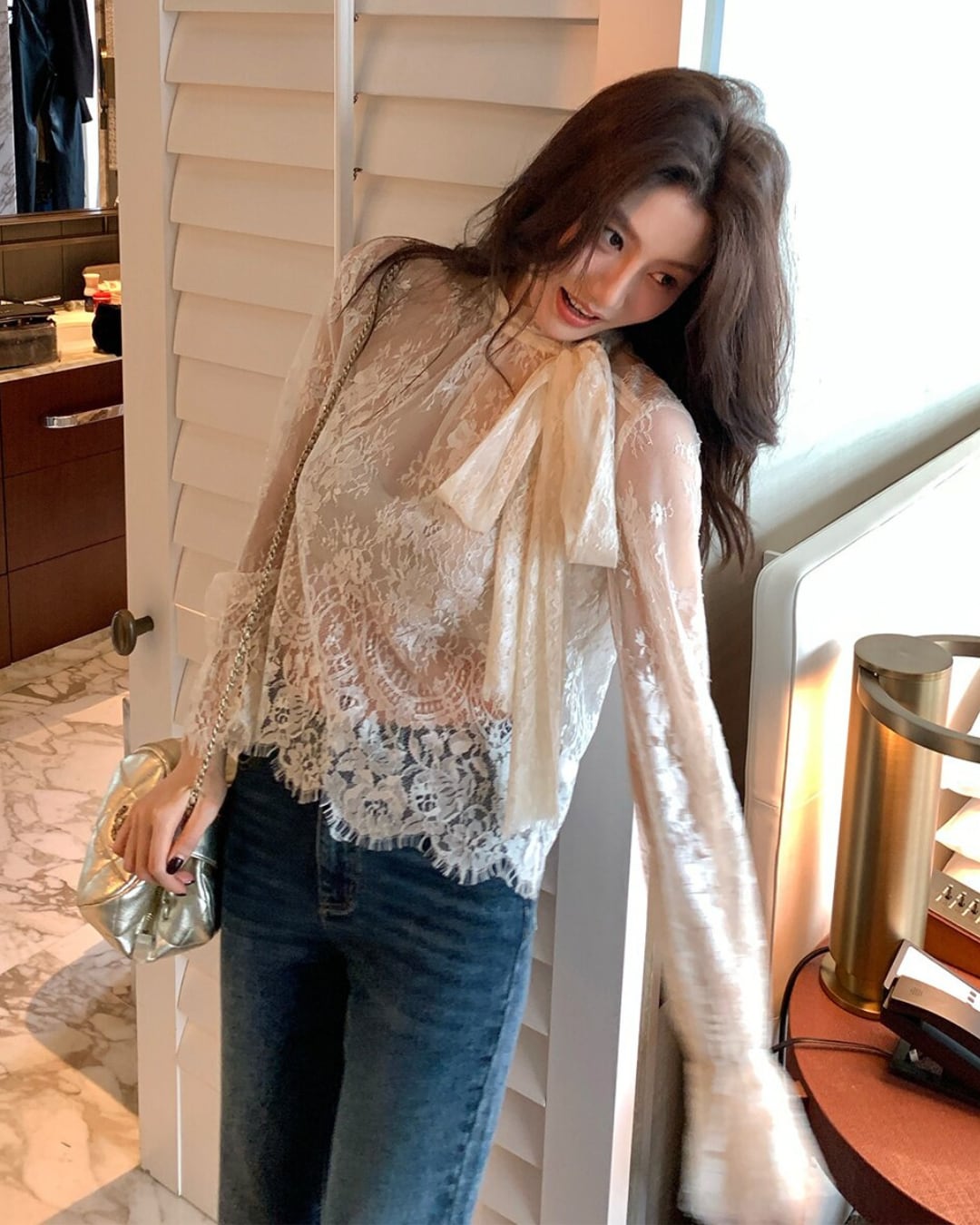 #レースブラウス #ボウタイブラウス #シアーブラウス #大人コーデ #きれいめコーデ #フェミニンコーデ #上品コーデ