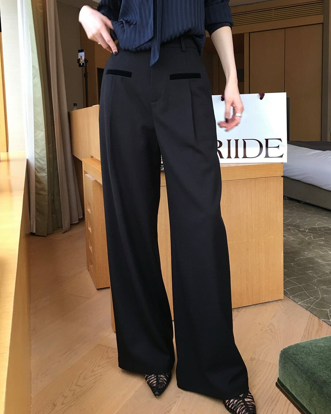 ゆったりとしたシルエットが特徴のワイドストレートスラックス。落ち感のある素材で脚のラインを美しく見せ、すっきりとしたシルエットを演出します。フロントにはベルベット調のポケットデザインを施し、シンプルな中にさりげないアクセントをプラス。程よくリラックス感のあるストレートシルエットで、トップスを選ばず幅広いコーディネートに合わせやすい一着です。