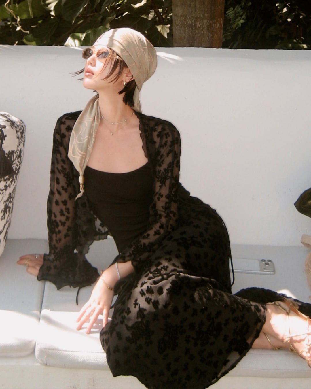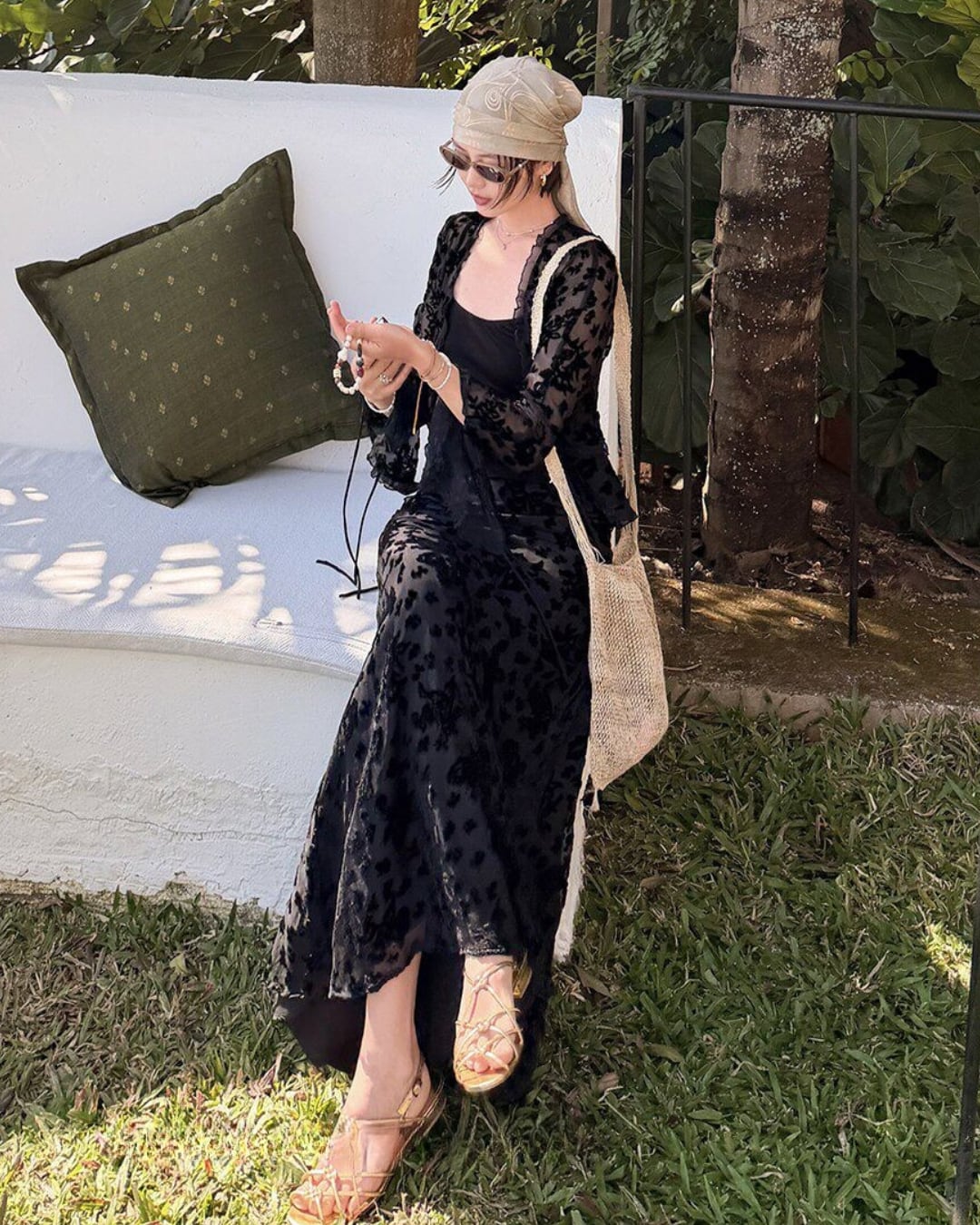 #レースワンピース #シアーワンピース #セットアップコーデ #ブラックワンピース #大人リゾートコーデ #夏ワンピース