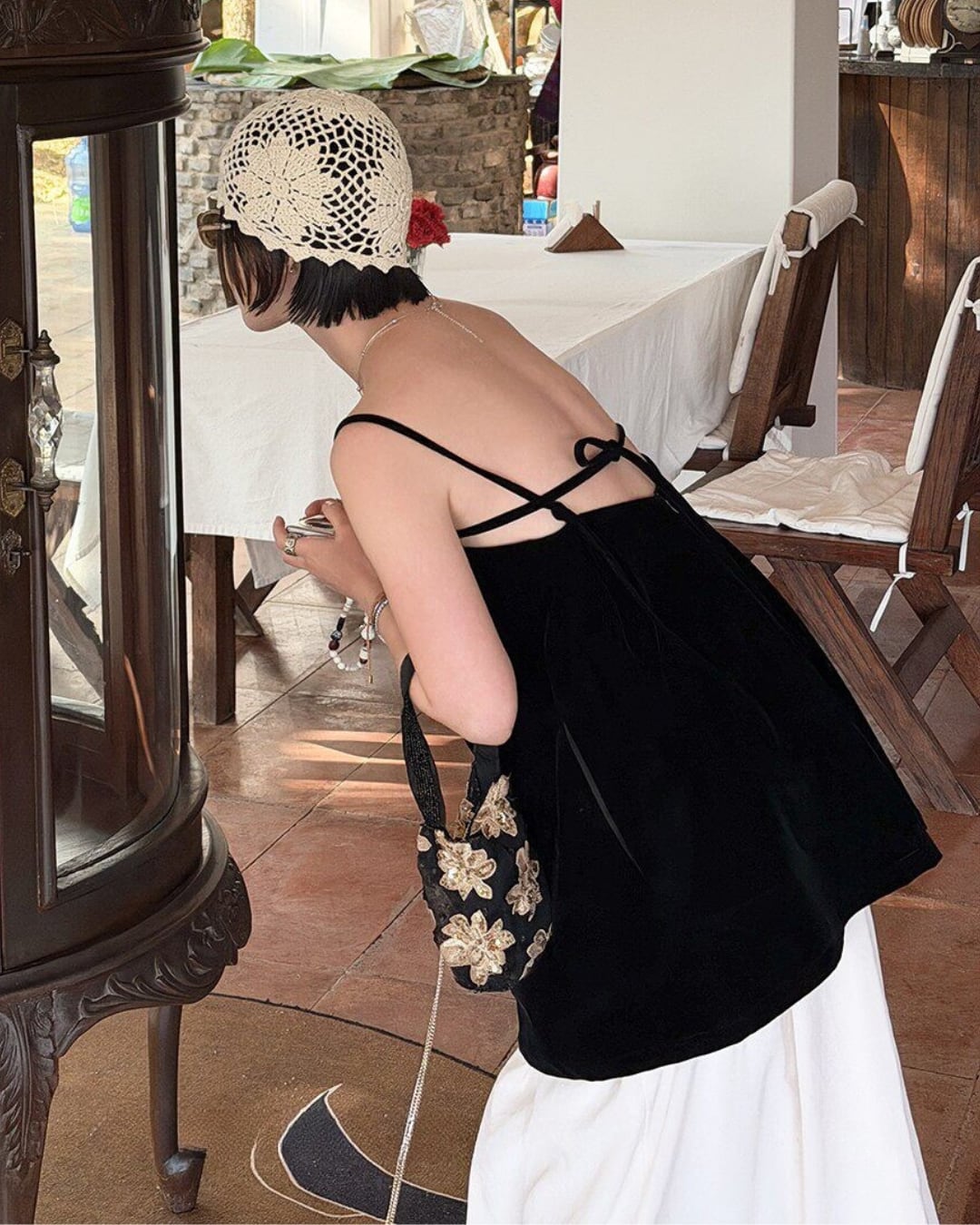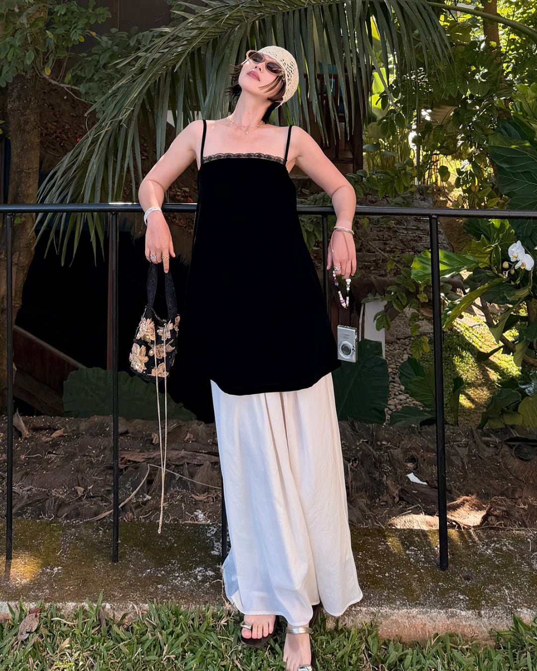 華奢なストラップと胸元のレースラインが女性らしい印象のキャミチュニックトップス。ふんわりと広がるシルエットでリラックス感があり、軽やかな着心地が魅力の一枚です。パンツやロングスカートとのレイヤードコーデにも相性が良く、リゾートスタイルや大人カジュアルコーデにもおすすめのアイテムです。