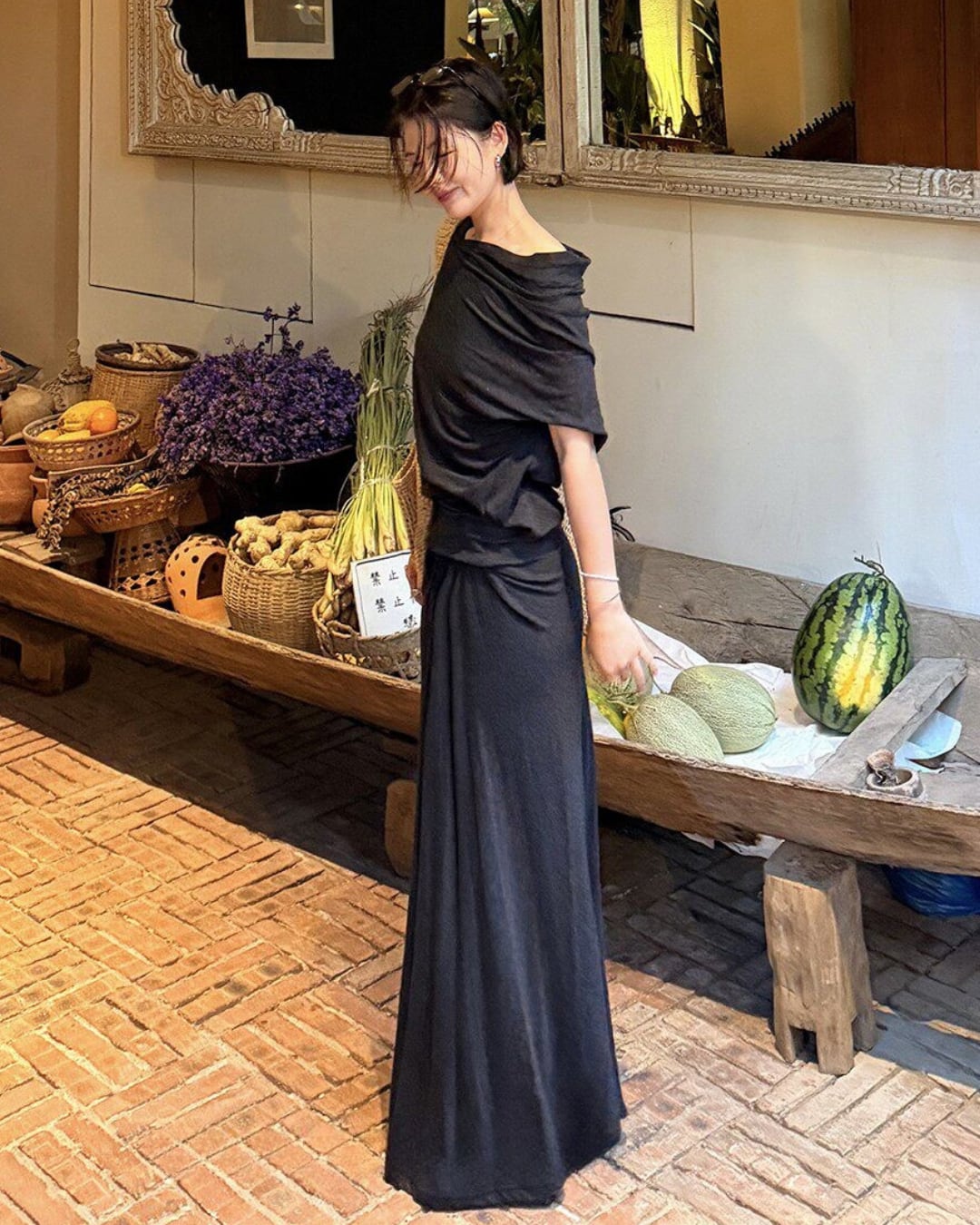 #セットアップ #ロングスカート #ドレープトップス #大人カジュアル #シンプルコーデ #リラックスコーデ