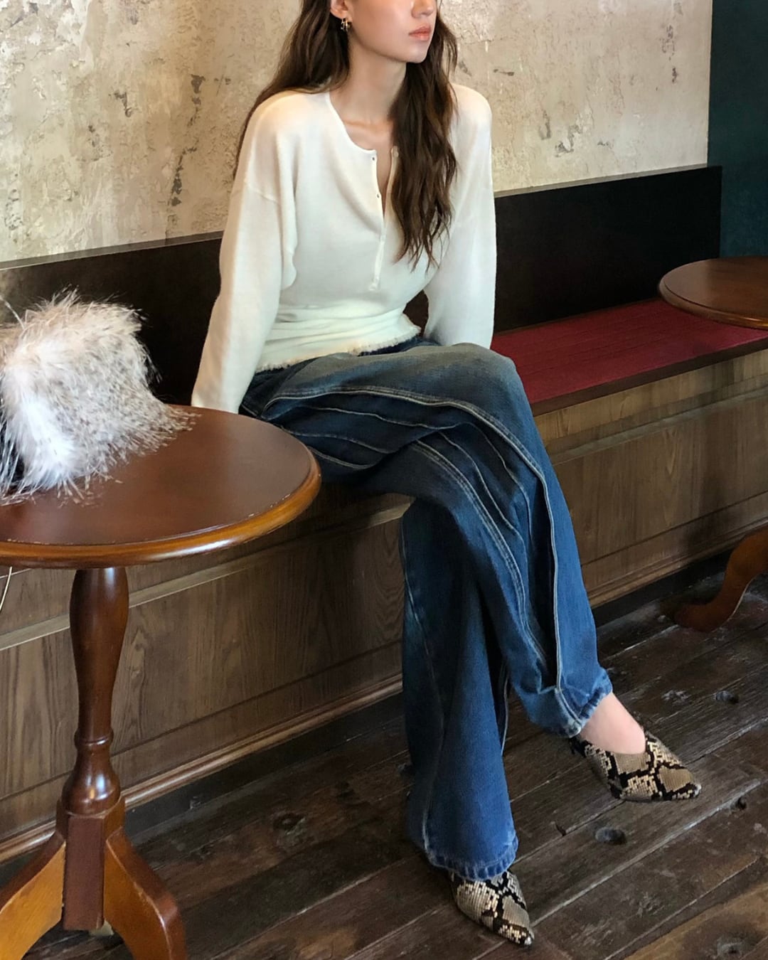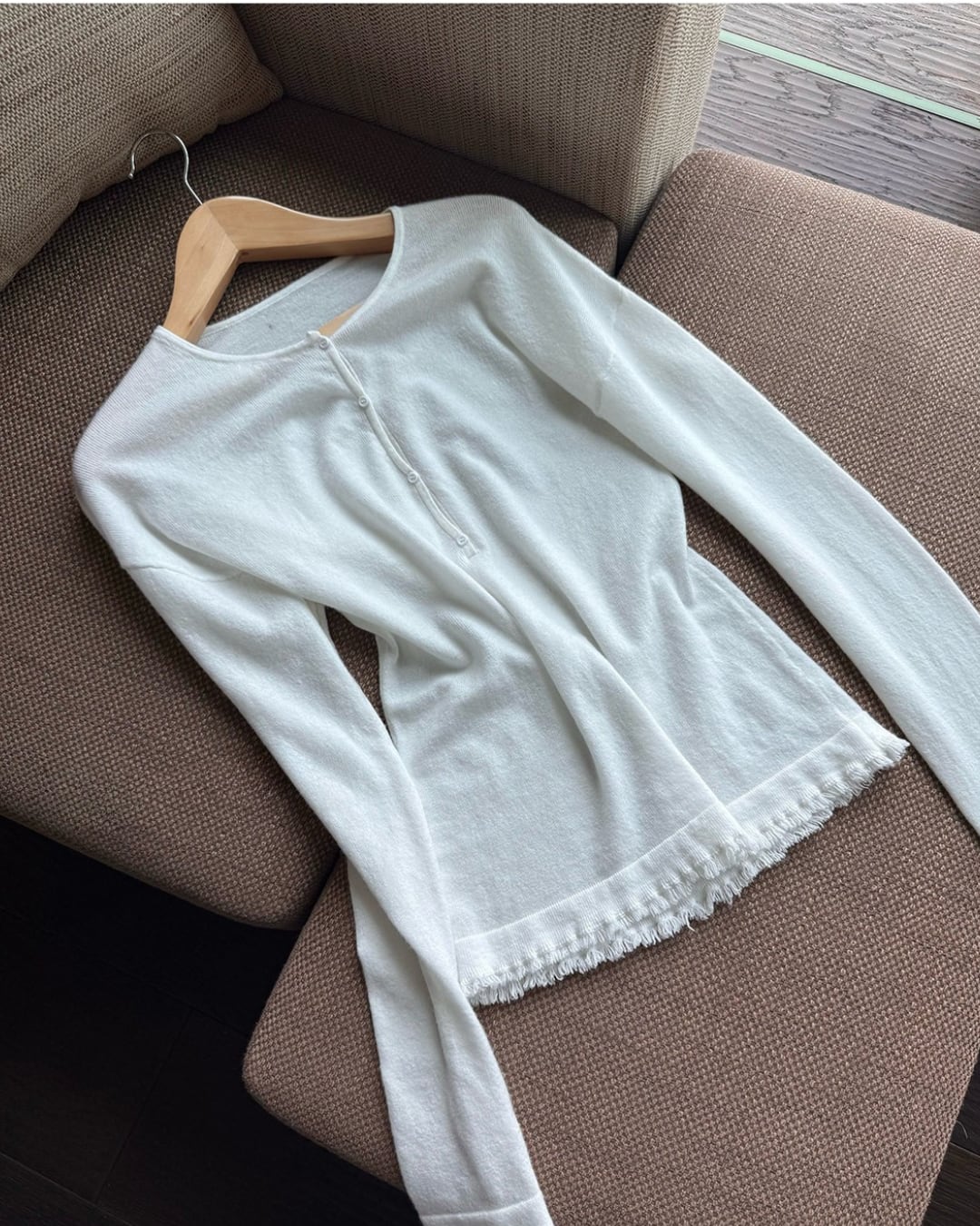 #ニットトップス #ヘンリーネック #フリンジデザイン #シンプルコーデ #大人カジュアル #きれいめカジュアル