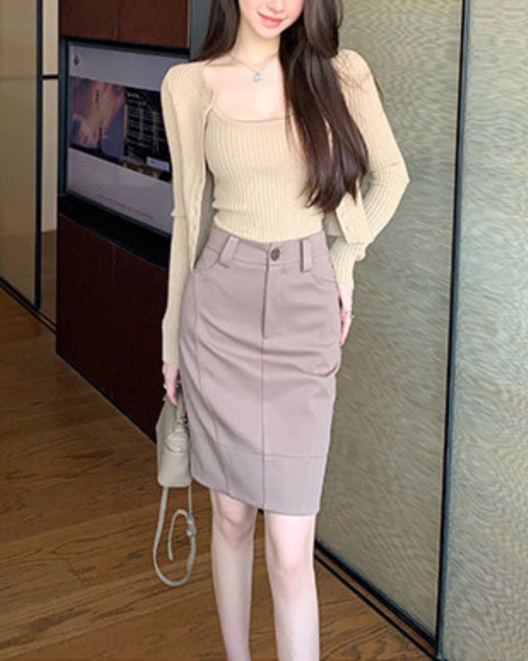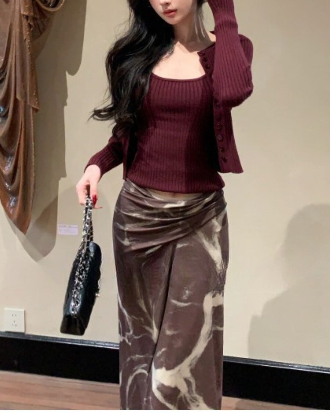 #ニットトップス #リブニット #アンサンブル #カーディガンコーデ #韓国ファッション #きれいめコーデ #大人カジュアル