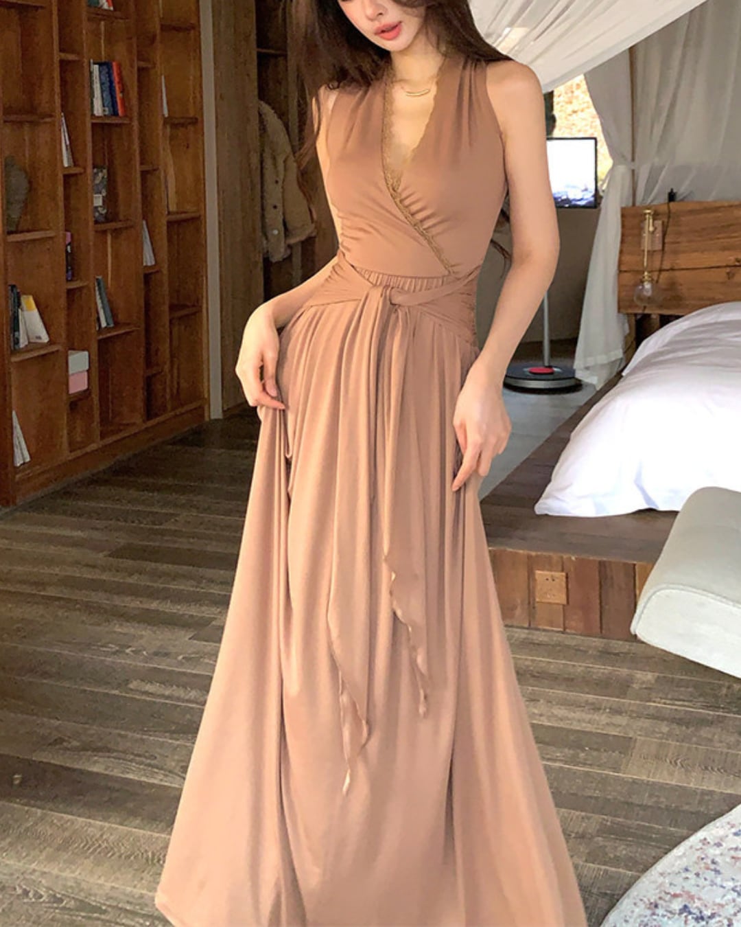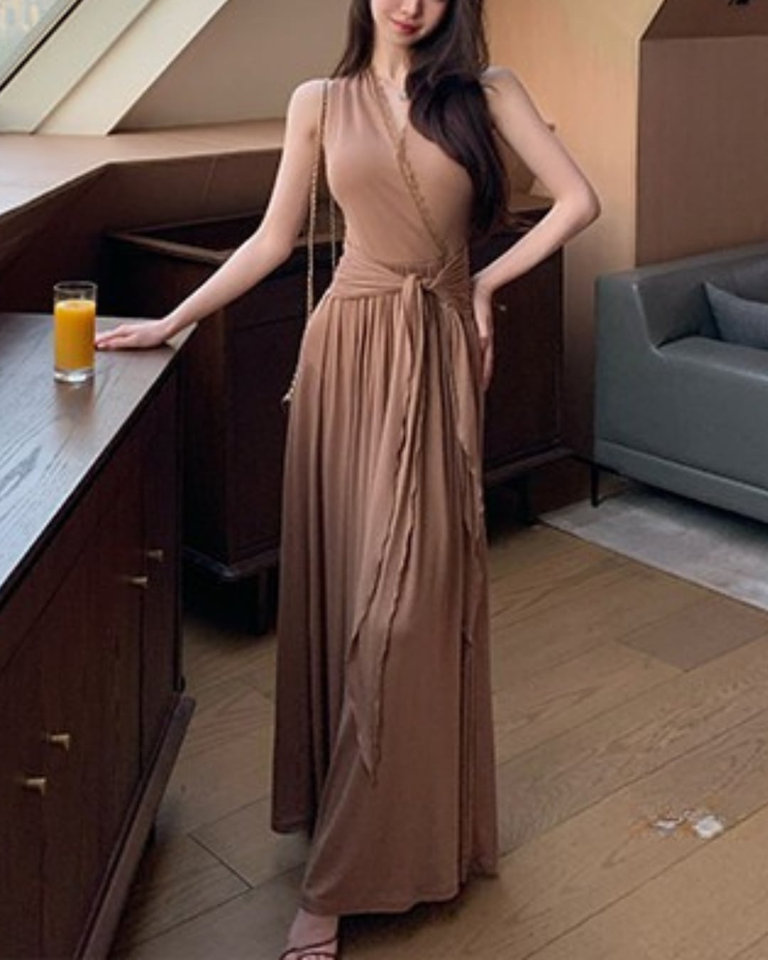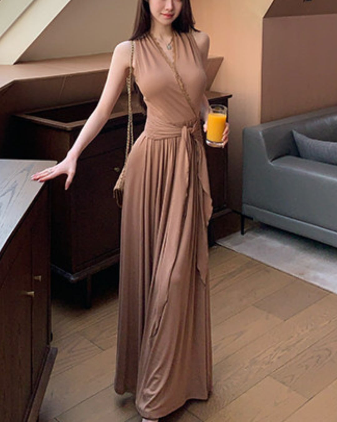 #ロングワンピース #ホルターネック #ドレープワンピース #韓国ファッション #大人コーデ #きれいめコーデ #リゾートコーデ