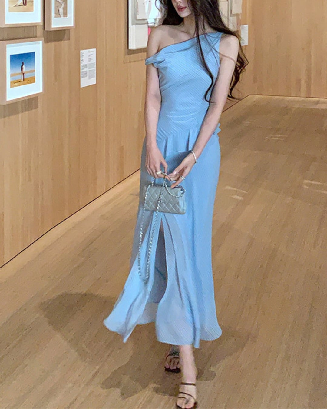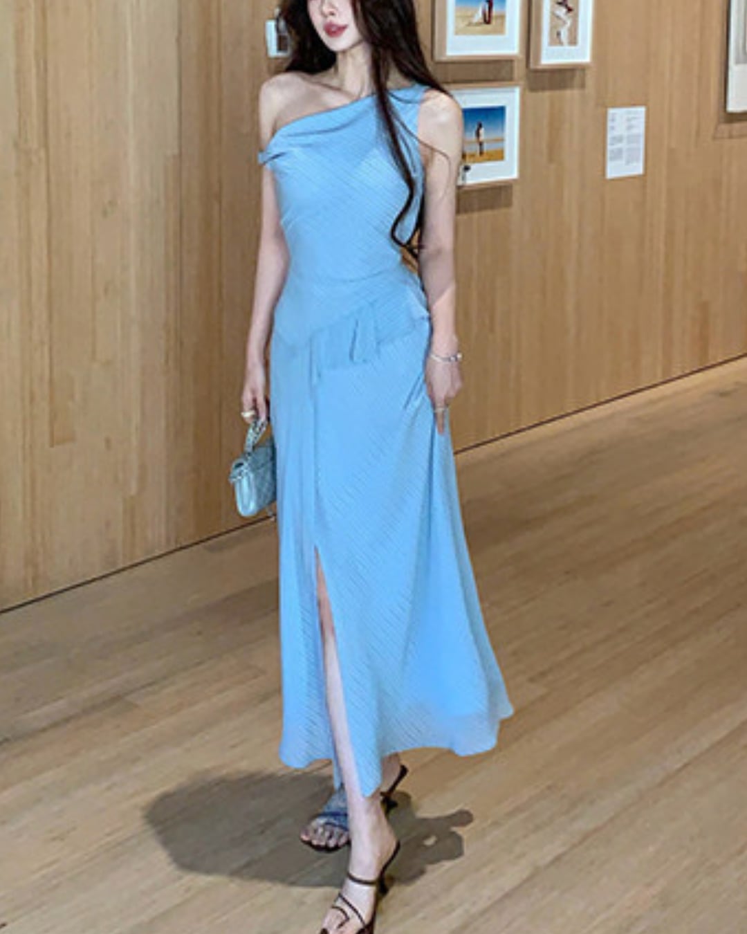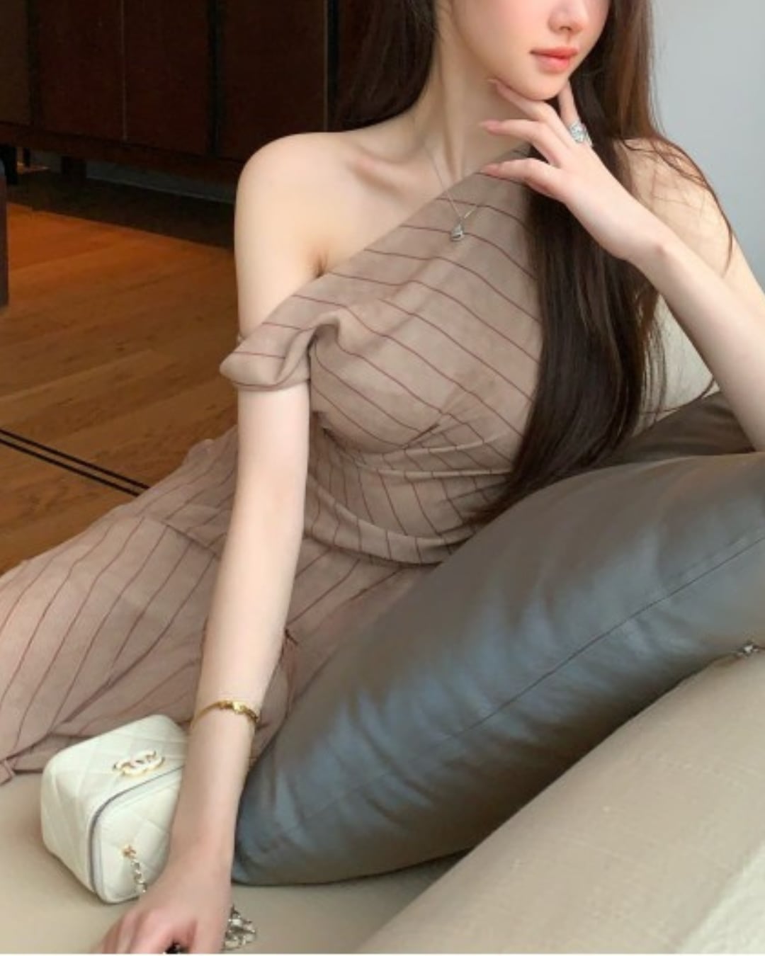 #ワンショルダーワンピース #ストライプワンピース #ロングワンピース #韓国ファッション #大人コーデ #きれいめコーデ #デートコーデ