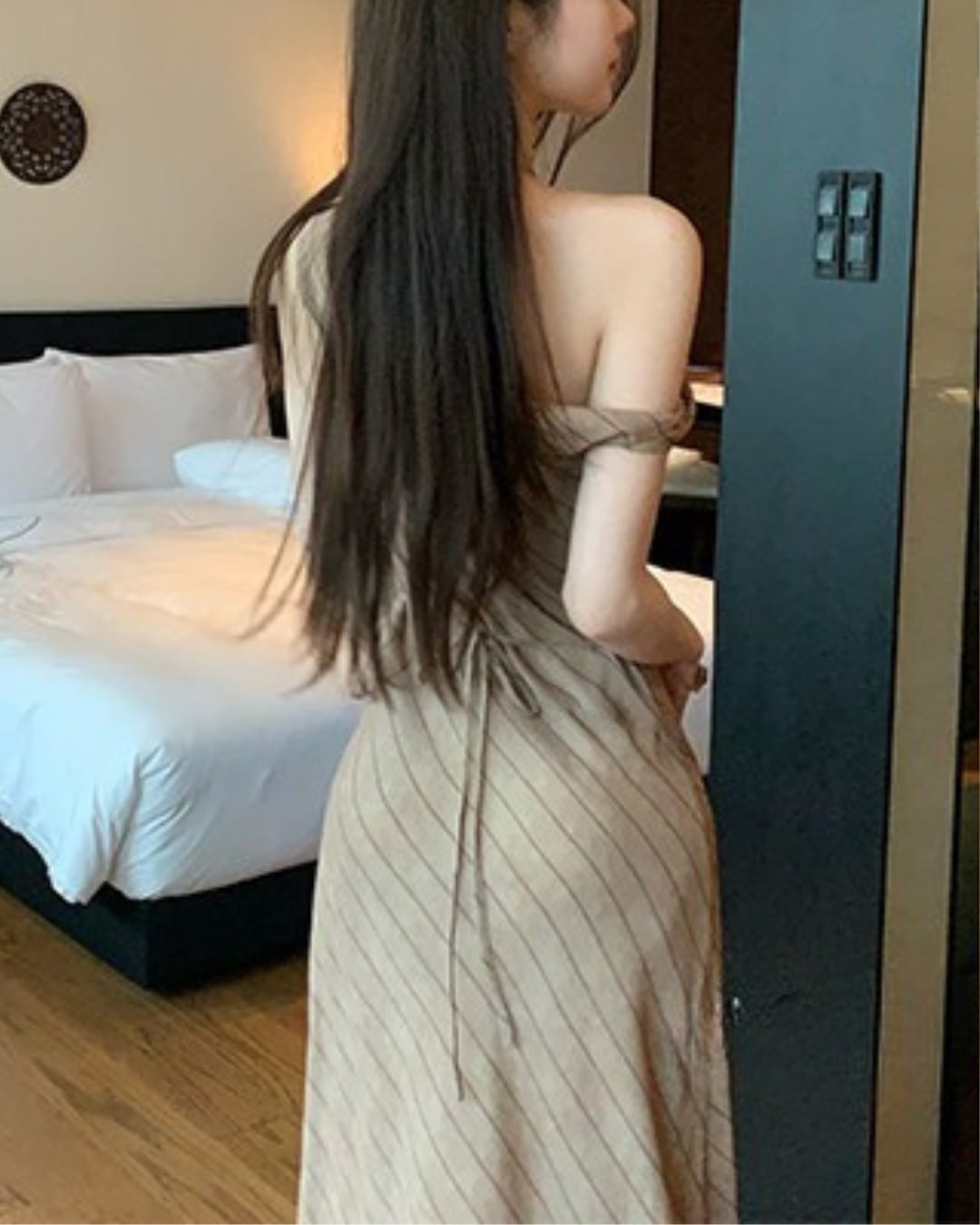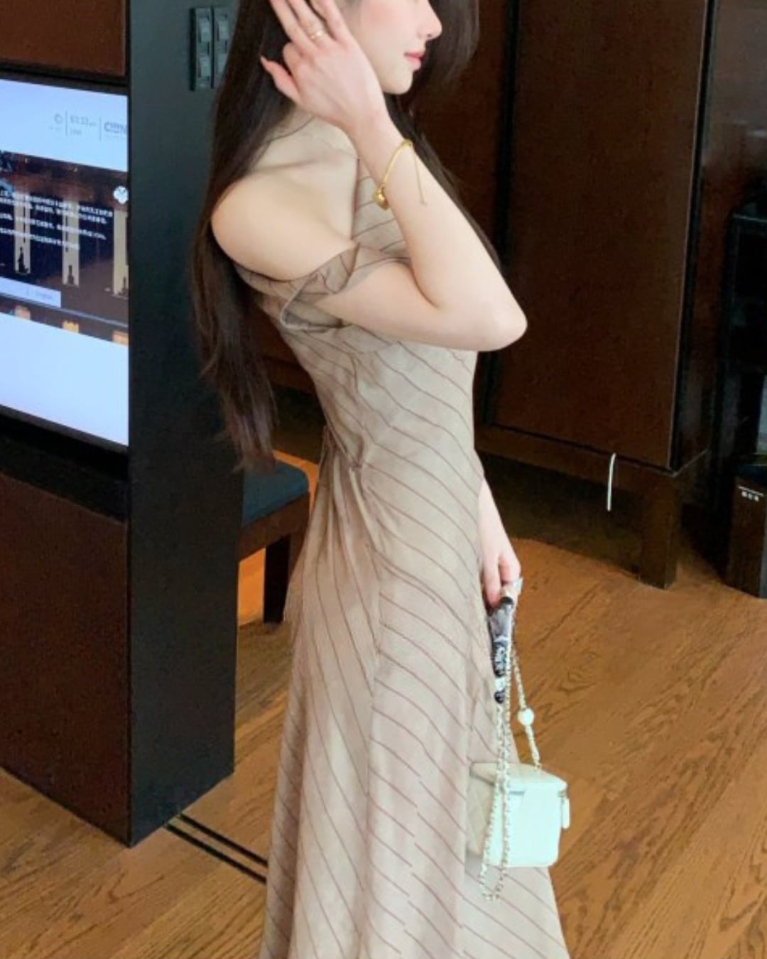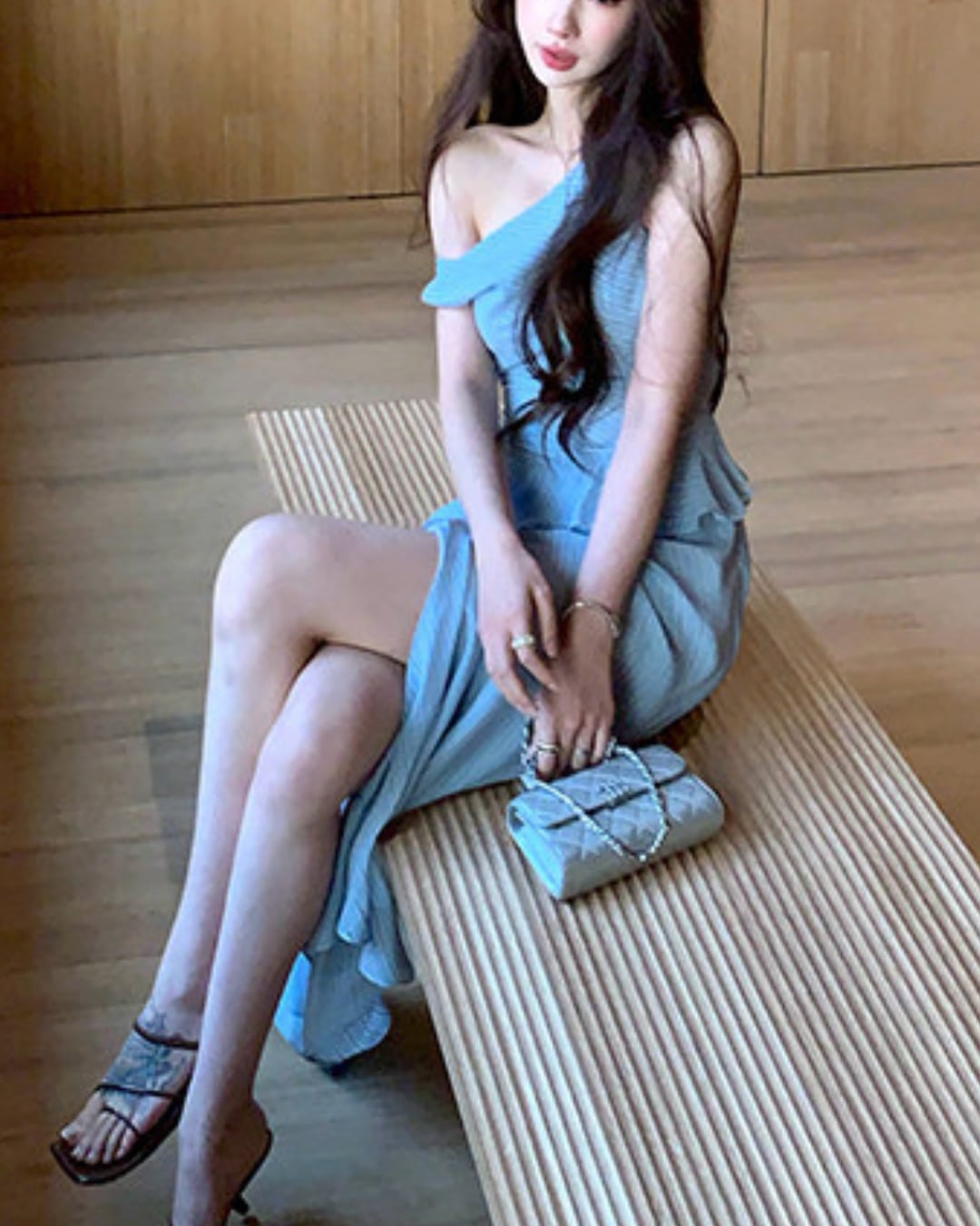 #ワンショルダーワンピース #ストライプワンピース #ロングワンピース #韓国ファッション #大人コーデ #きれいめコーデ #デートコーデ