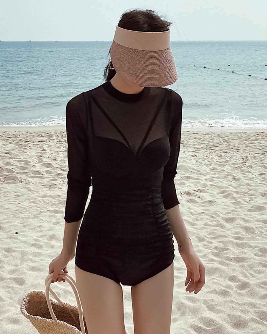 #ワンピース水着 #シアー水着 #メッシュ水着 #体型カバー水着 #韓国水着 #リゾートコーデシ