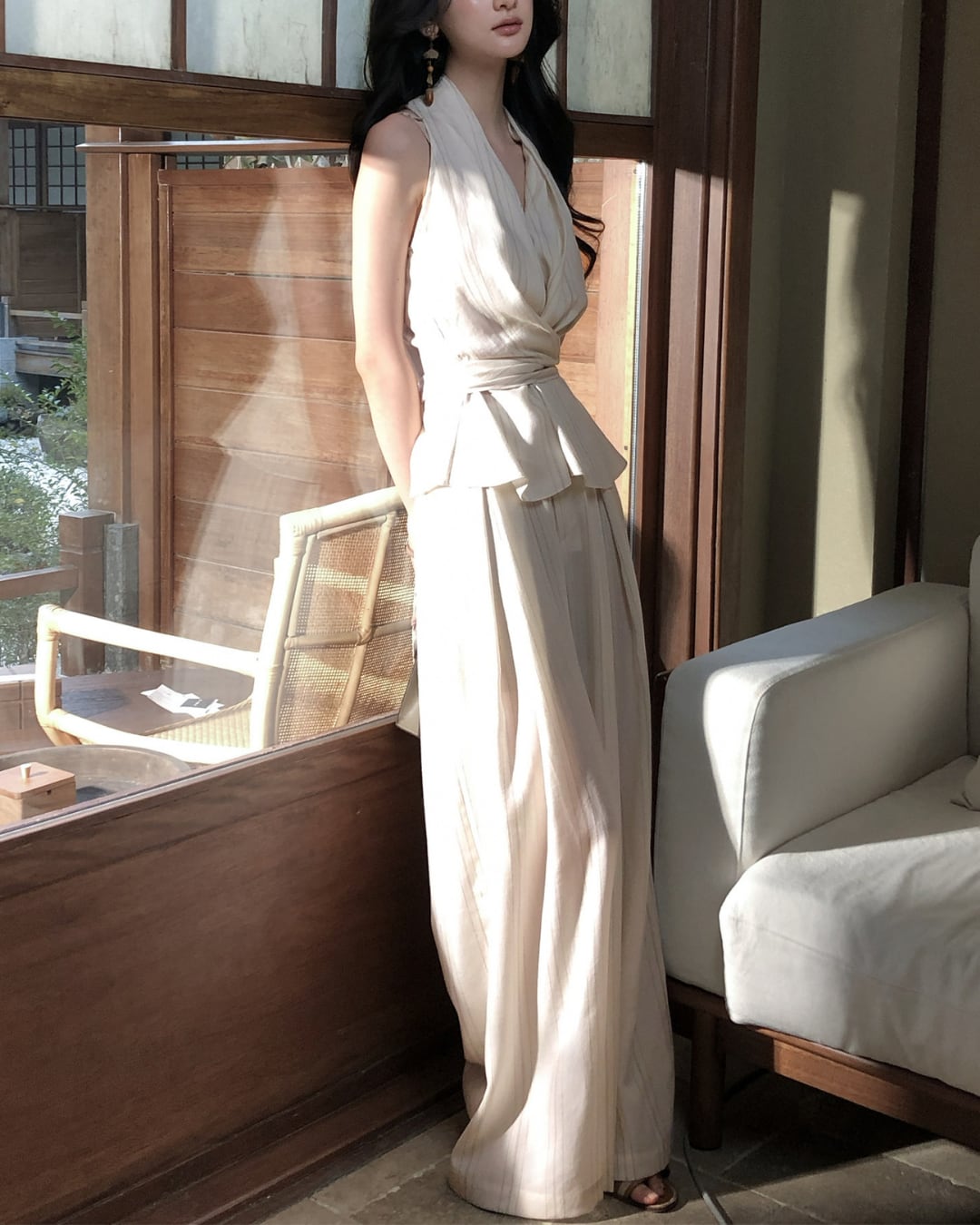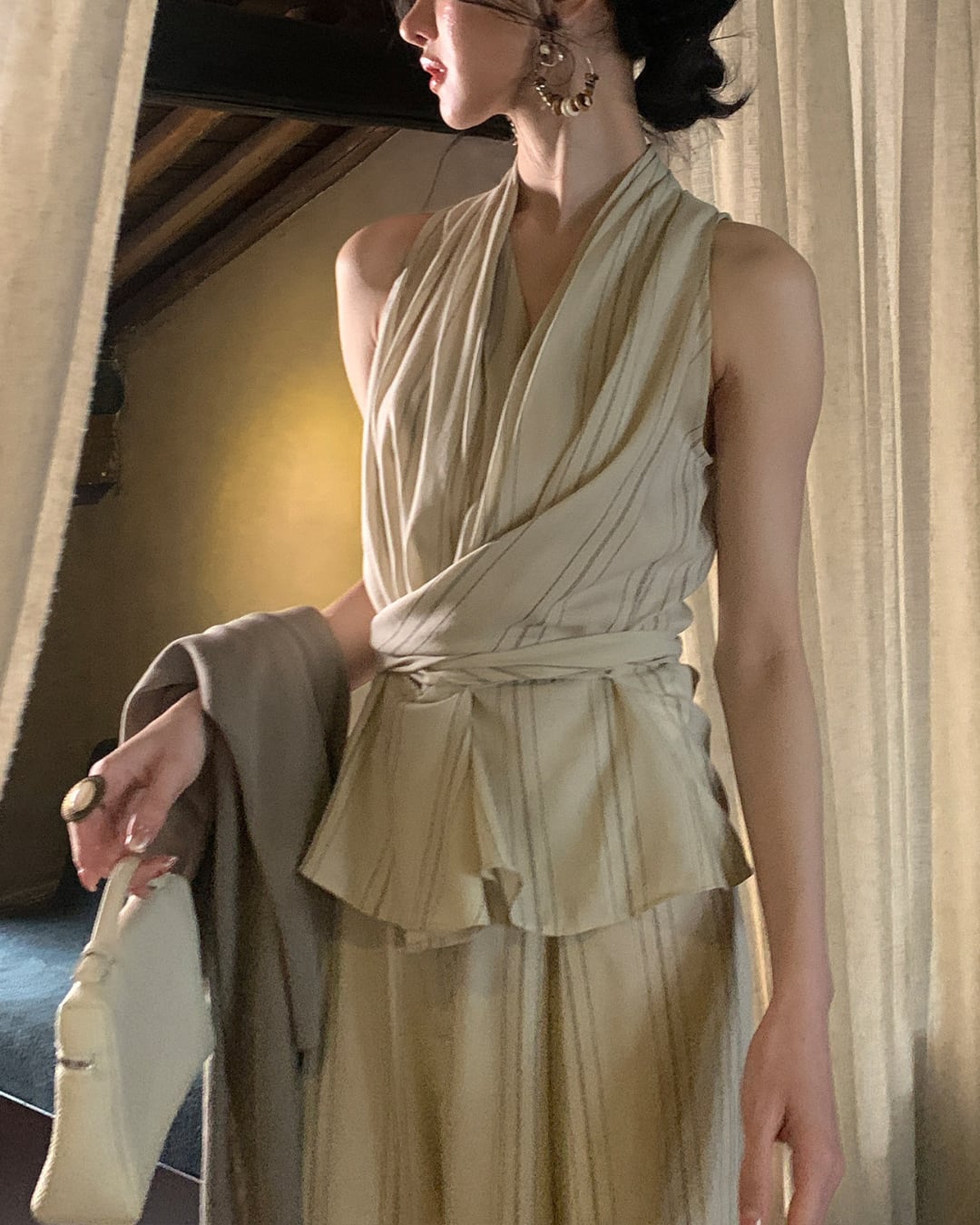 #セットアップ #ワイドパンツ #ドレープトップス #大人コーデ #きれいめコーデ #リゾートコーデ