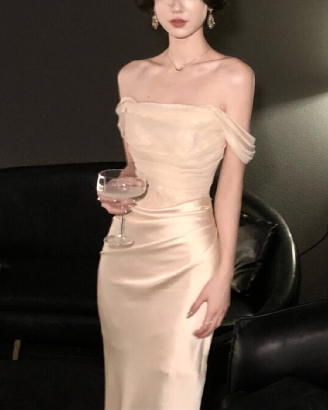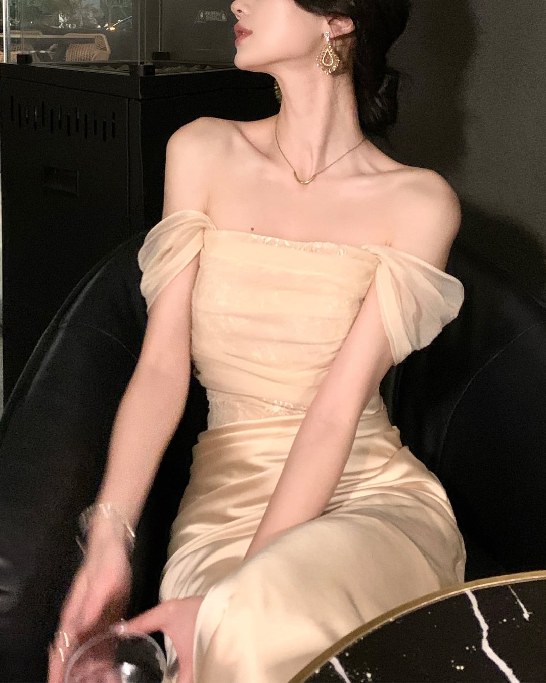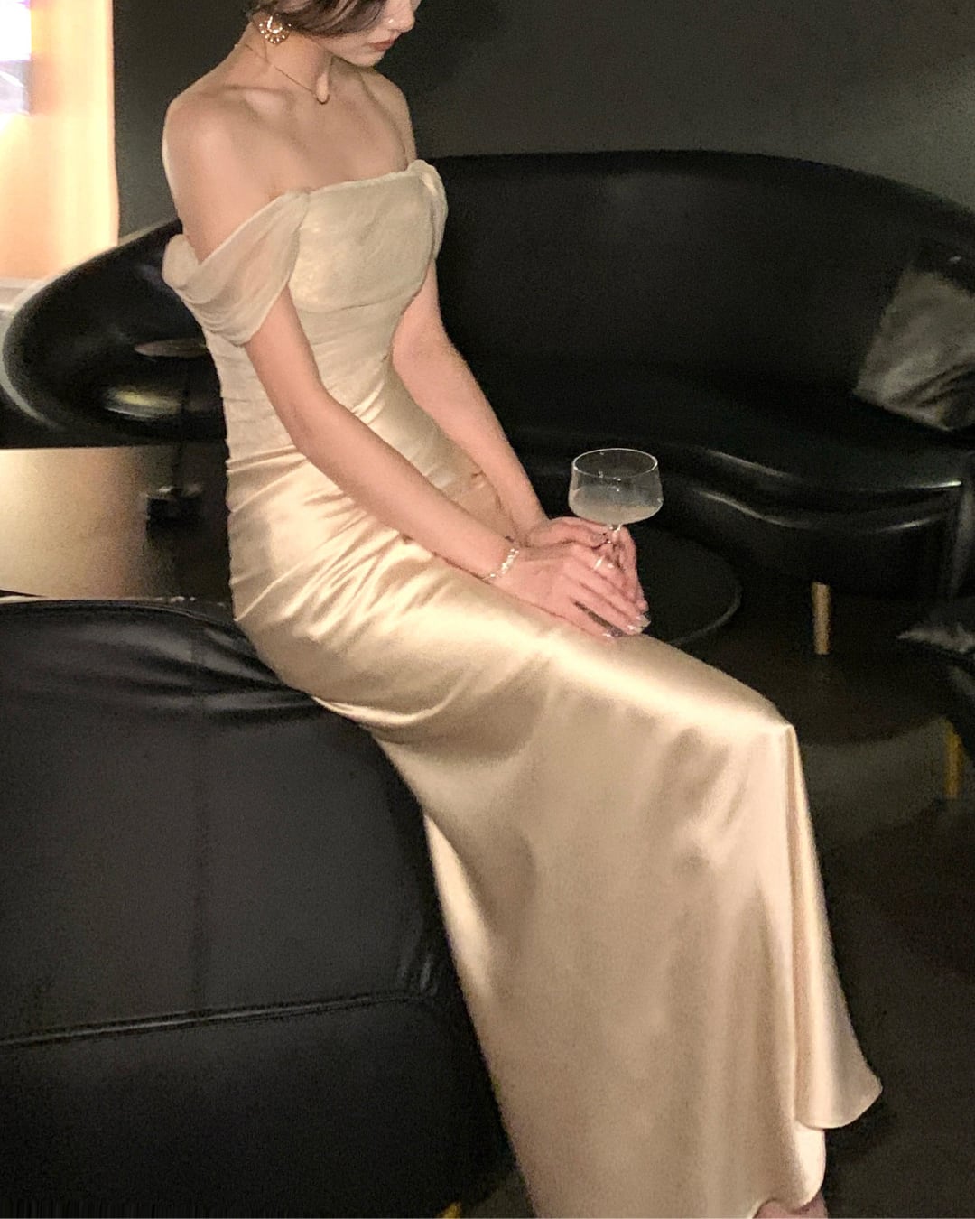 #オフショルダードレス #サテンドレス #マーメイドドレス #パーティードレス #大人ドレス #韓国ファッション
