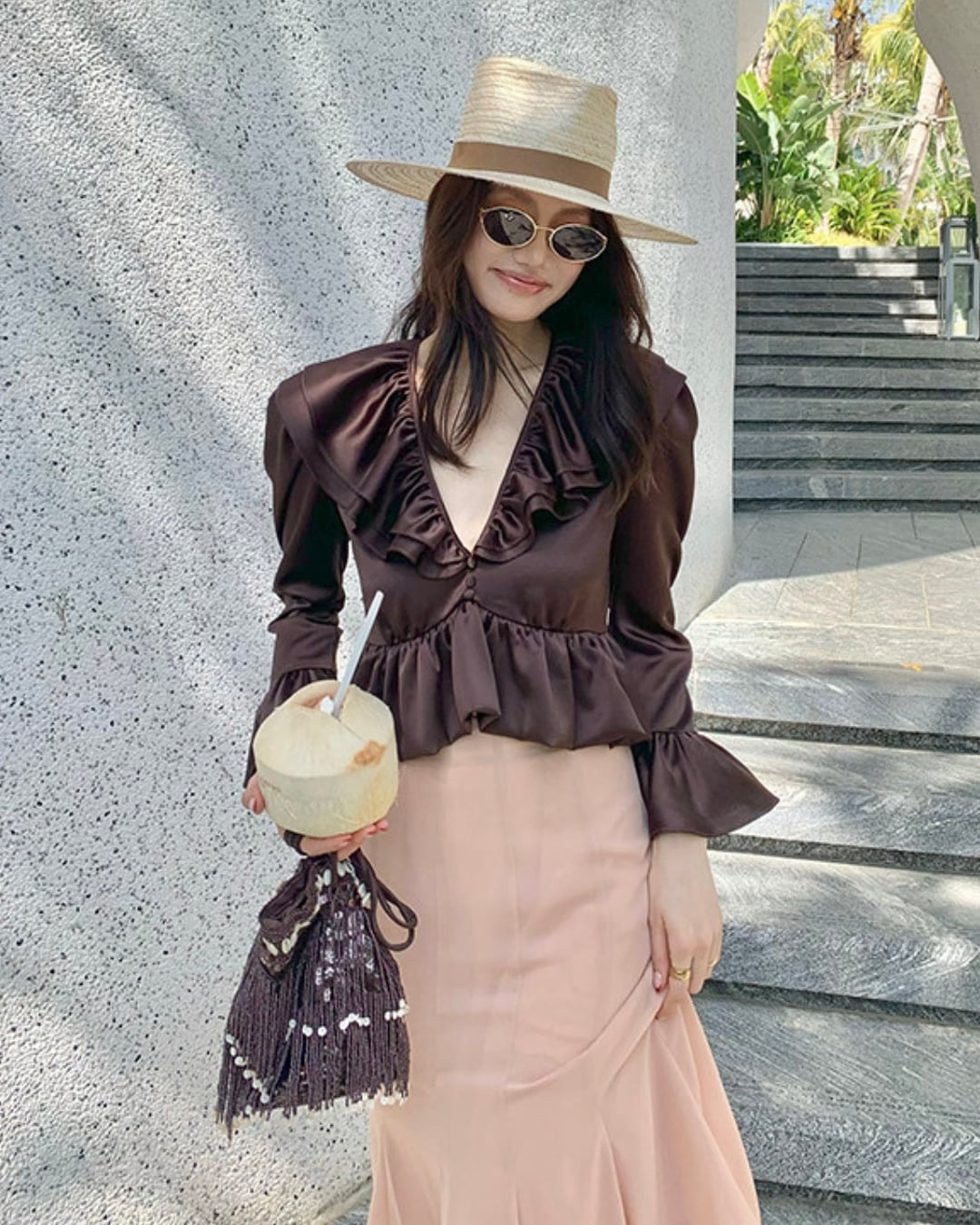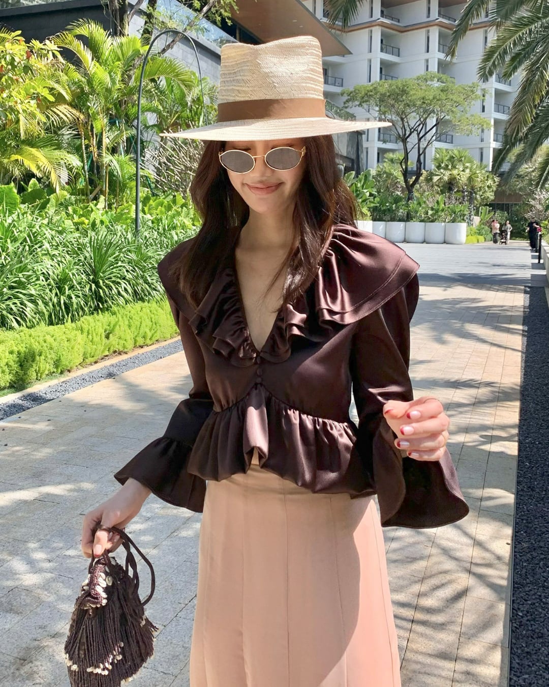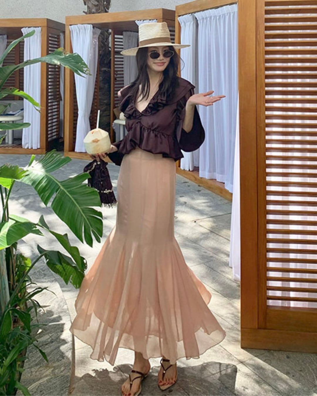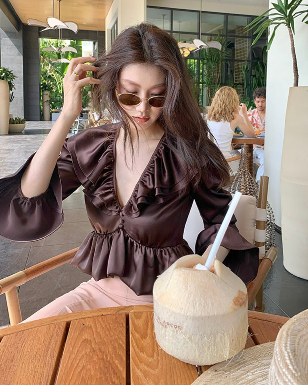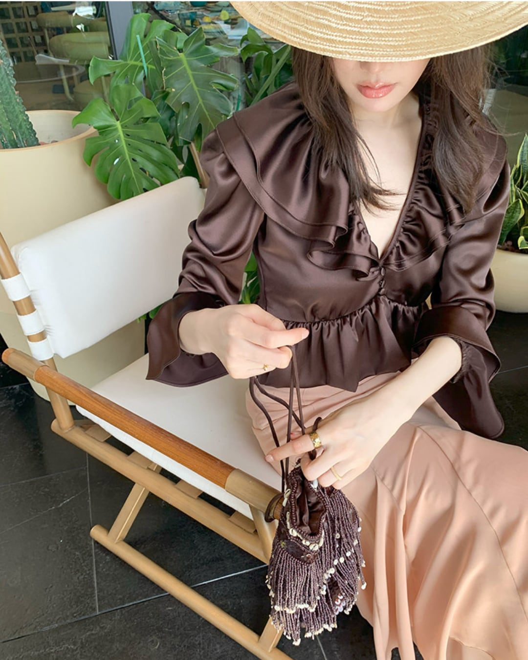 #サテンブラウス #フリルブラウス #Vネックブラウス #きれいめトップス #韓国ファッション #大人コーデ