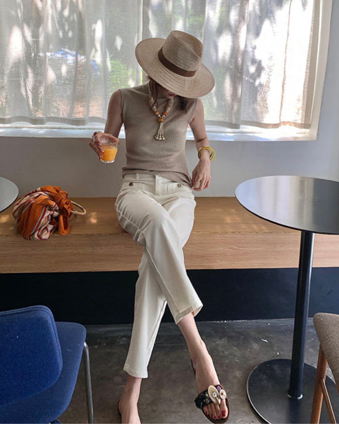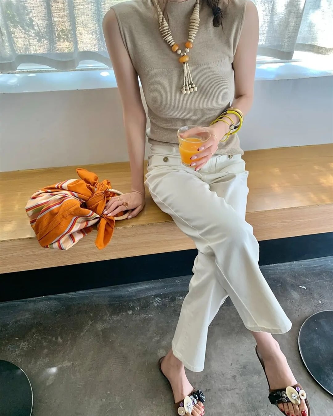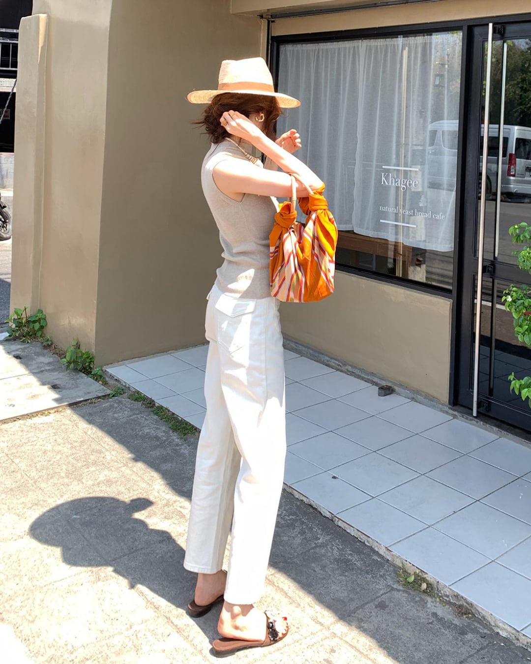#ホワイトデニム #ストレートパンツ #ハイウエスト #美脚パンツ #脚長効果 #シンプルコーデ