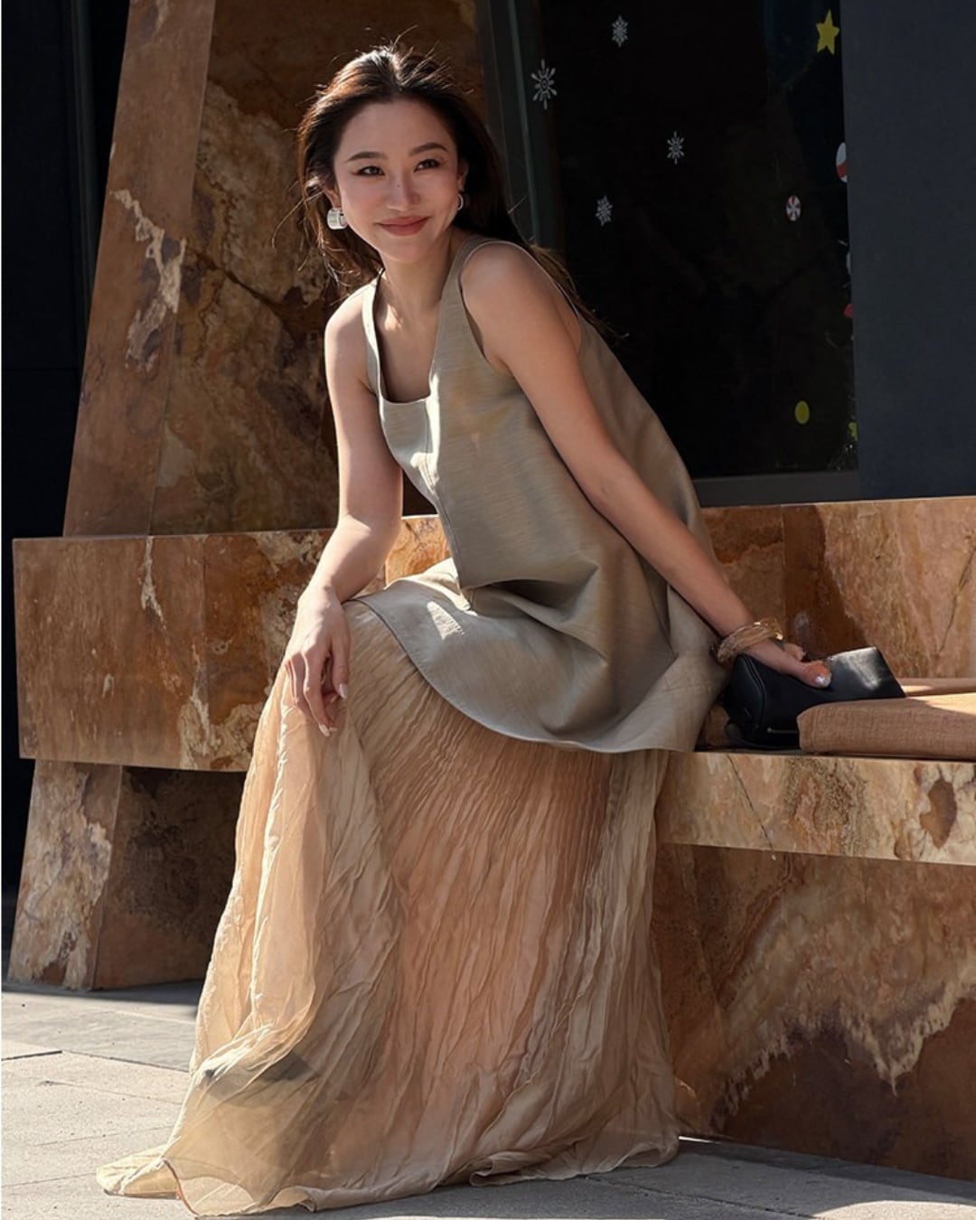 柔らかな落ち感とナチュラルなシワ感が魅力のロングスカート。軽やかに揺れるフレアシルエットが、女性らしい上品な雰囲気を演出します。広がりすぎない絶妙なボリューム感で、スタイルを美しく見せながら体型カバーも◎シンプルながら存在感のある素材感で、Tシャツからニットまで幅広いコーデにマッチ。シーズンレスで活躍する、大人のための万能スカートです。