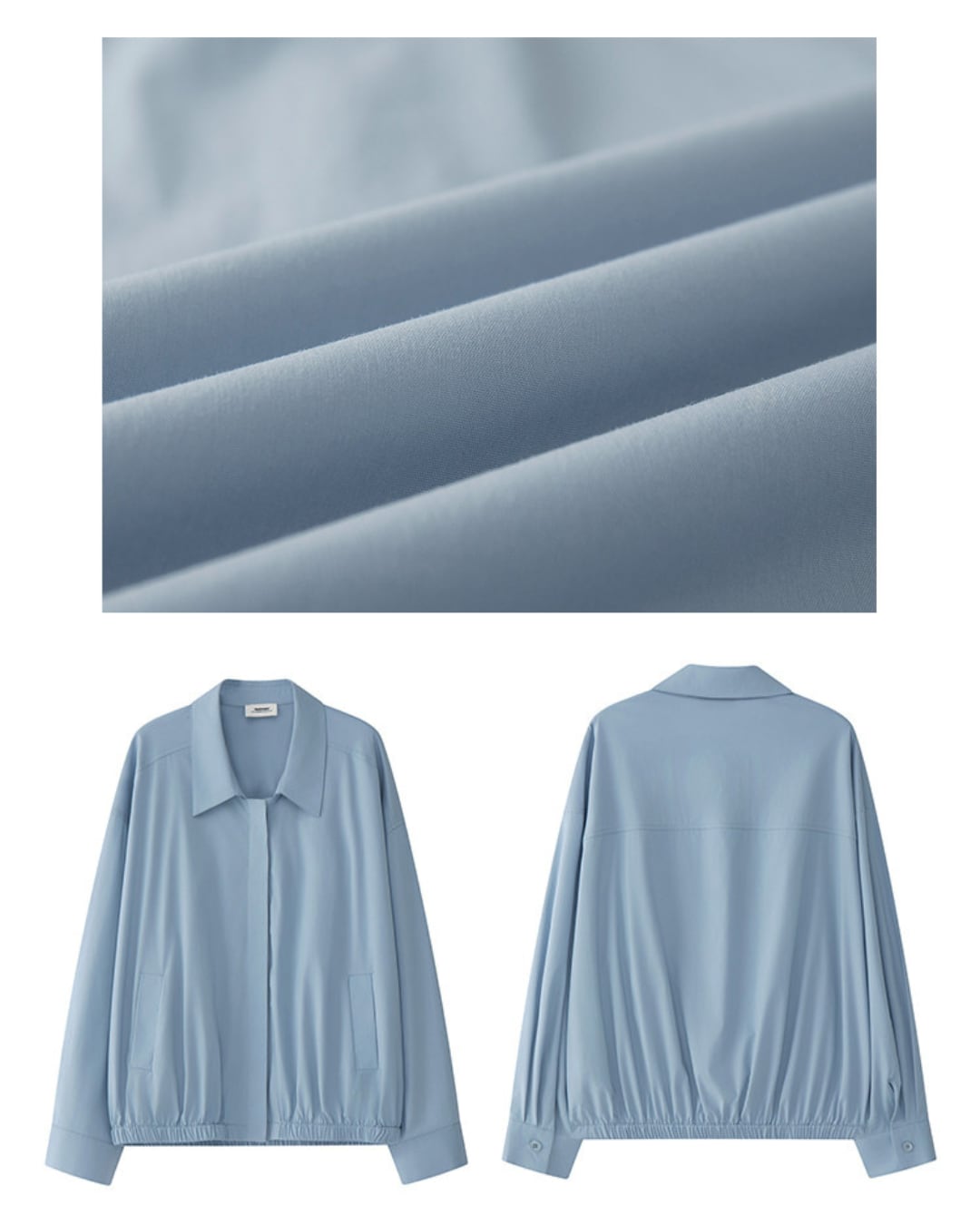 軽やかな素材感と程よいハリ感が魅力のショート丈ブルゾンシャツ。 裾のゴムデザインがシルエットに丸みを出し、抜け感のあるスタイリングを演出します。 シャツのきちんと感とブルゾンのラフさを兼ね備えたデザインで、羽織りとしても活躍。 カジュアルからきれいめまで幅広いコーデに合わせやすい一着です。