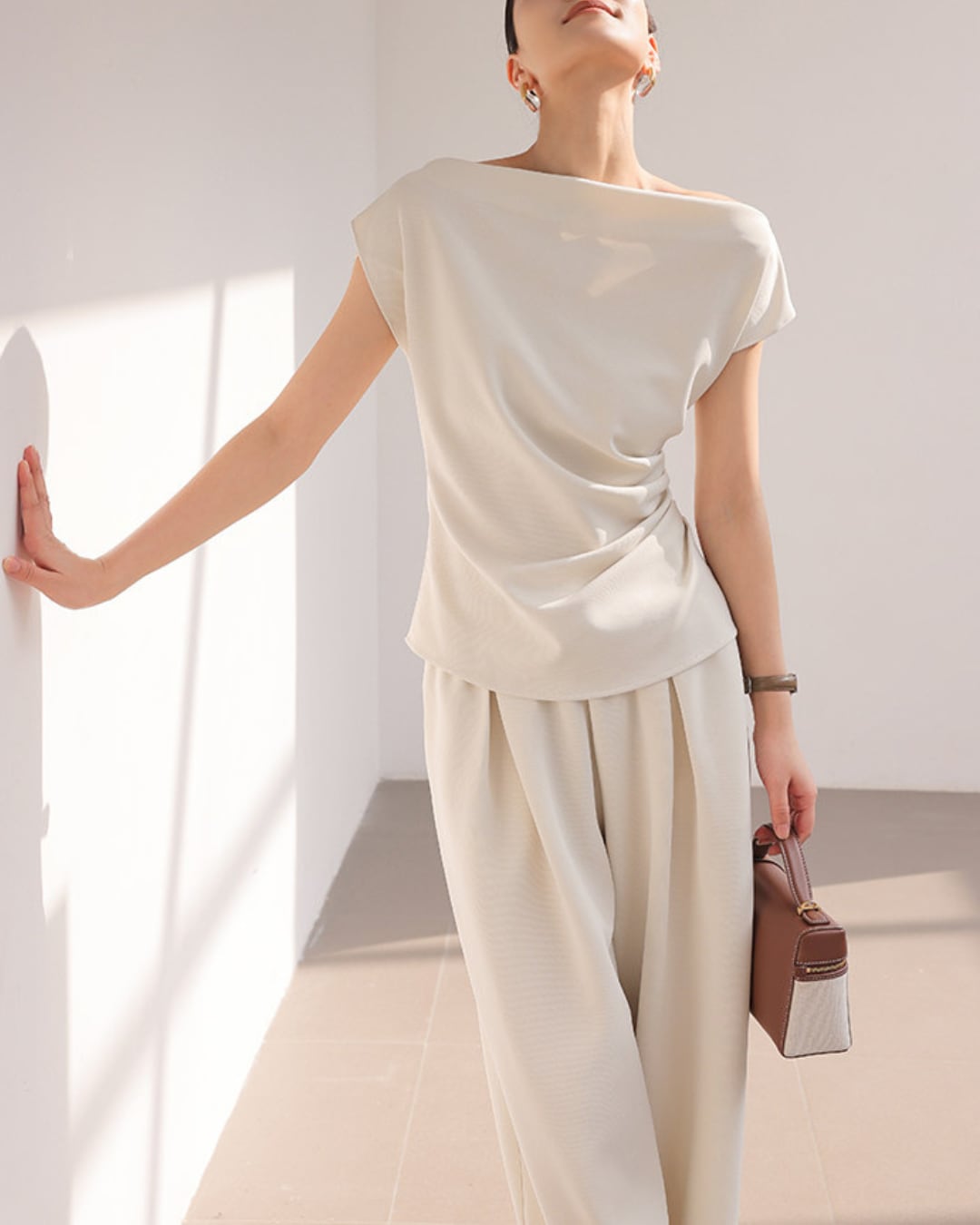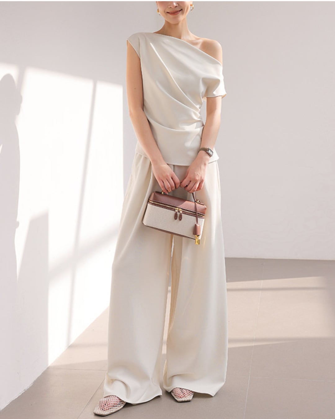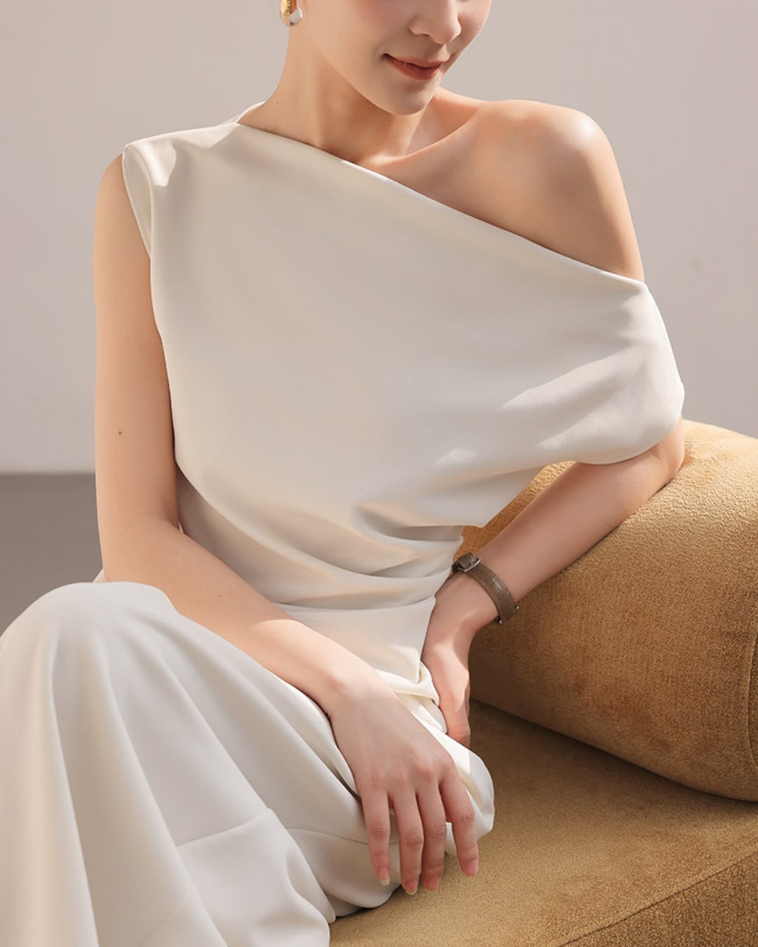 #セットアップ #ワンショルダー #ドレープトップス #ワイドパンツ #大人コーデ #エレガントスタイル