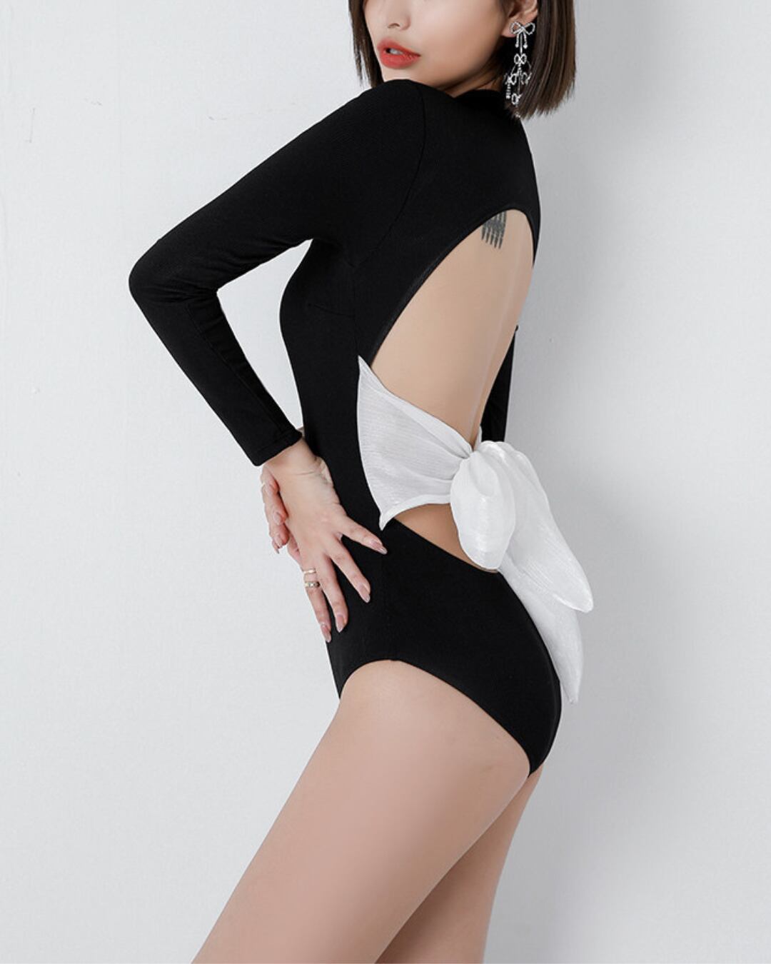 #ワンピース水着 #バックシャン #リボンデザイン #長袖水着 #体型カバー #大人シンプル