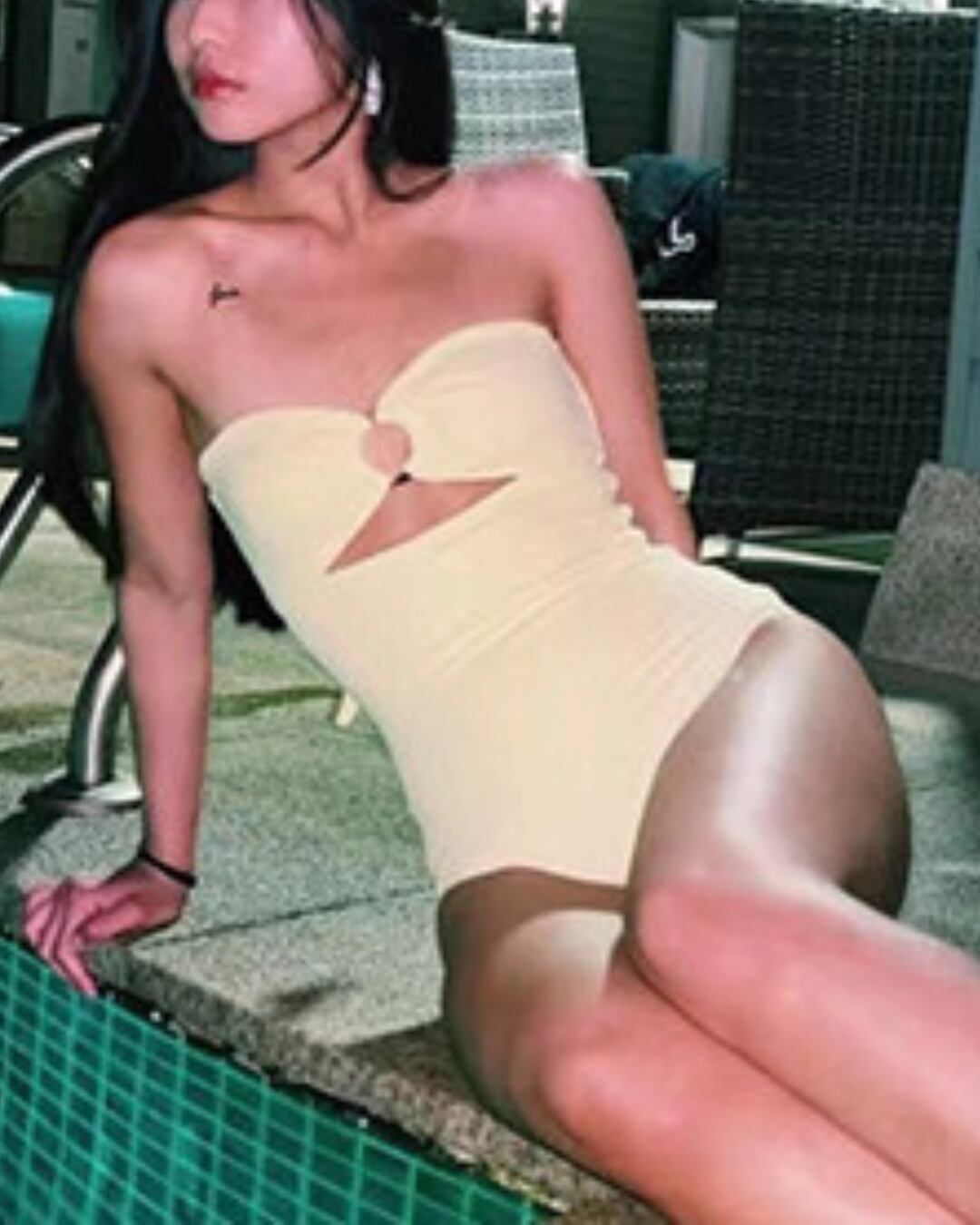 #ワンピース水着 #カットアウト #リブ素材 #大人水着 #バックリボン #リゾートコーデ