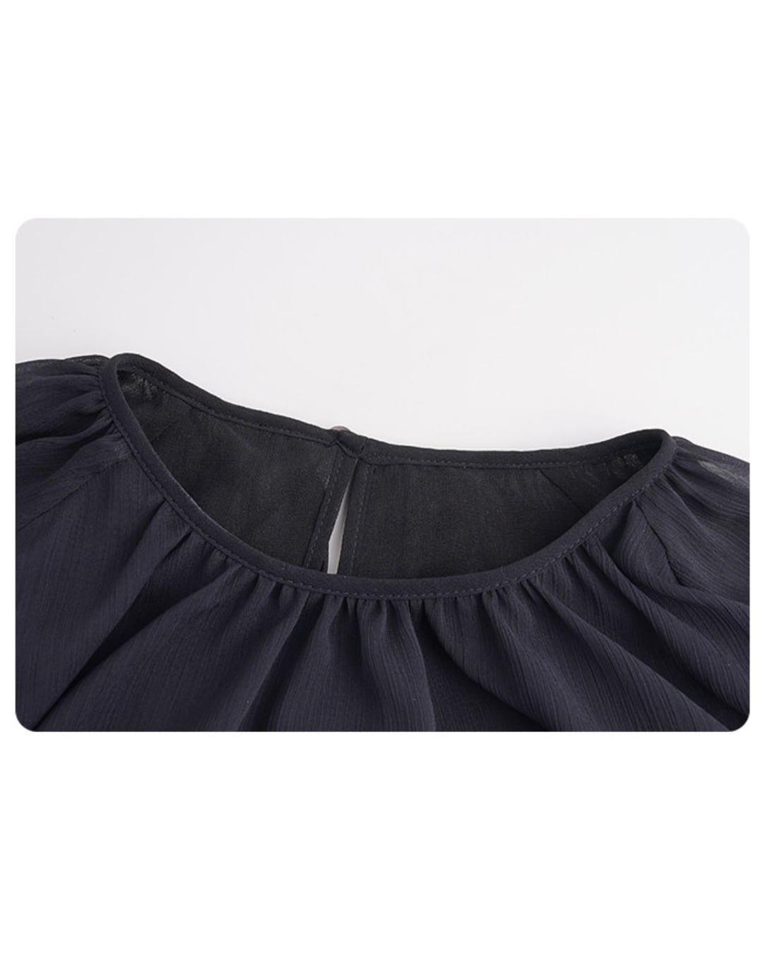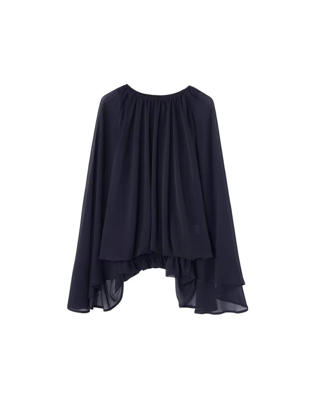軽やかなシフォン素材を使用した上品なブラウス。ふんわりと広がるフレアスリーブとドレープ感のあるシルエットが、女性らしく柔らかな印象を演出します。シンプルながらも動きのあるデザインで、きれいめスタイルにもカジュアルにも合わせやすい一着です。