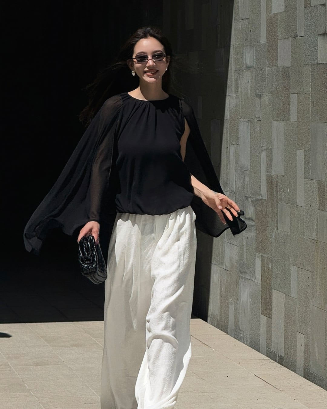 #シフォンブラウス #フレアスリーブ #ブラックコーデ #きれいめコーデ #大人コーデ #上品コーデ
