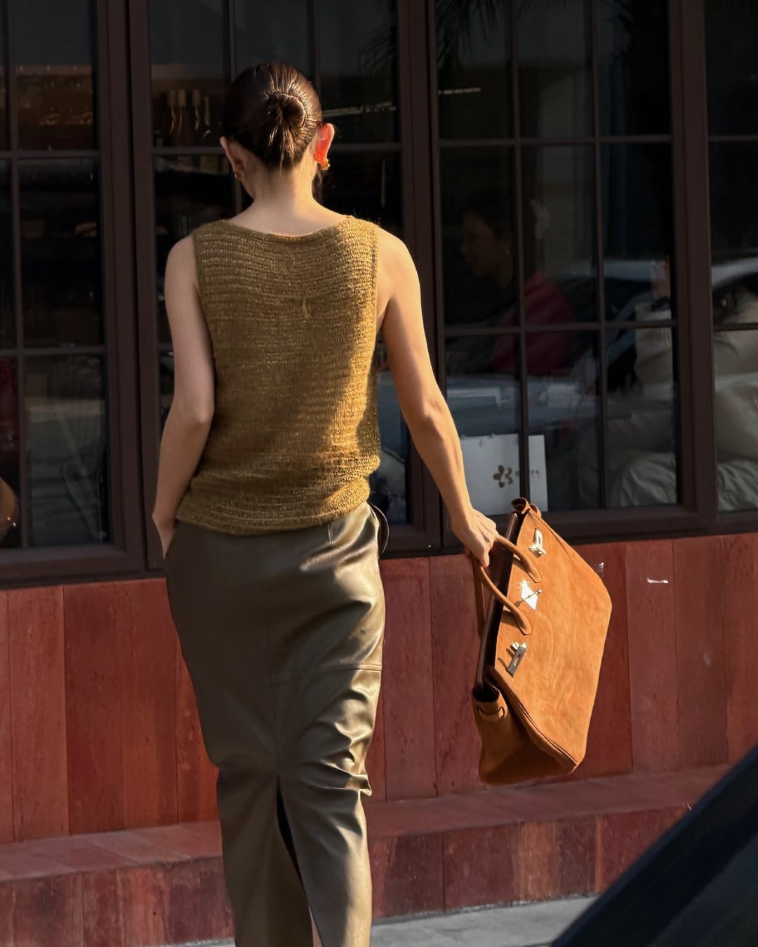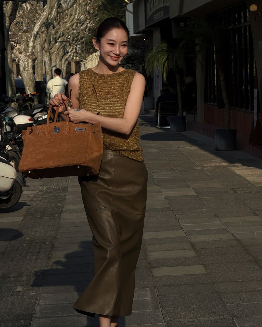 #メッシュニット #ノースリーブトップス #ブラウンコーデ #透け感トップス #大人カジュアル #レイヤードコーデ
