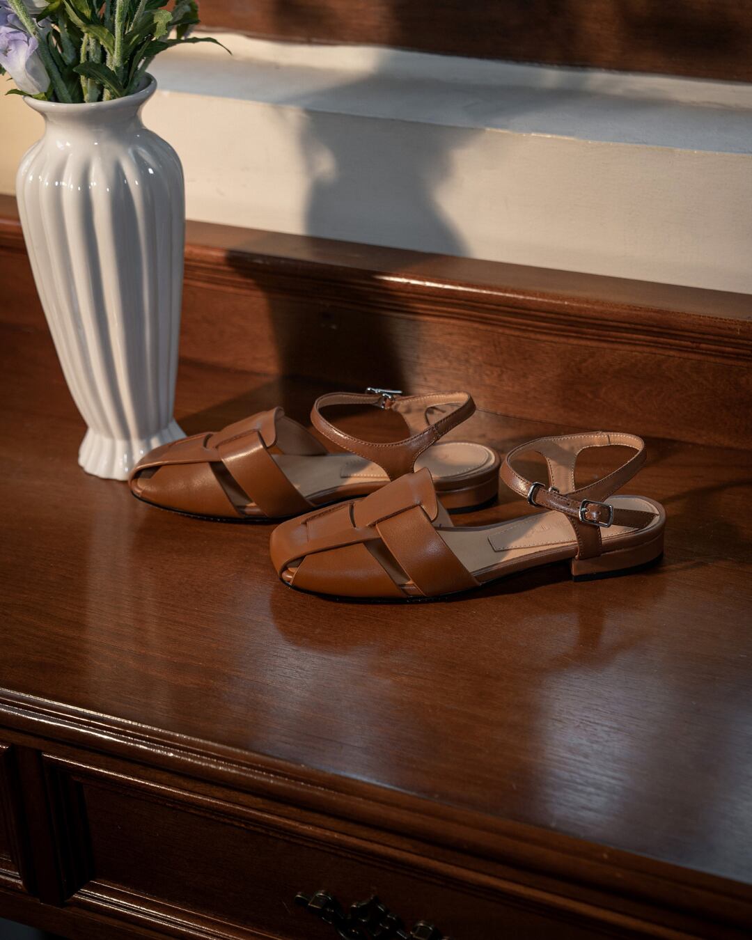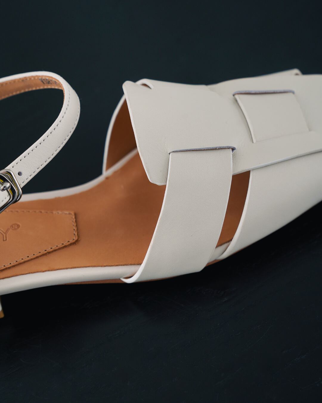 上品なレザー素材とミニマルなデザインが魅力のストラップサンダル。 スクエアトゥのシルエットがトレンド感を演出し、足元に洗練された印象をプラスします。 足首ストラップでしっかりとホールドされ、安定感のある履き心地。 シンプルで合わせやすく、デイリーからきれいめコーデまで幅広く活躍する一足です。