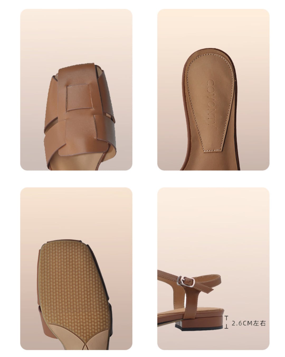 スクエアトゥレザーストラップサンダル G26003