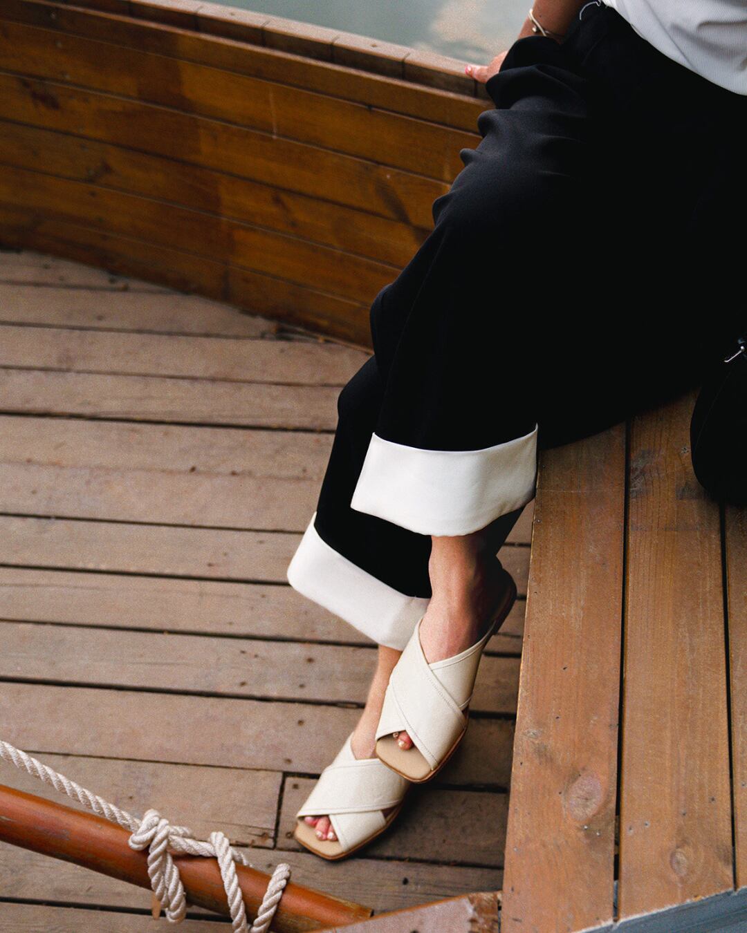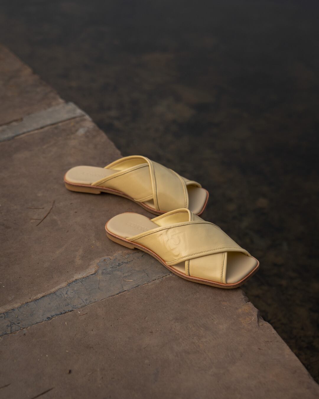 クロスデザインが印象的なミニマルフラットサンダル。 足元に程よい抜け感をプラスし、シンプルながらも洗練された印象に仕上げてくれる一足です。 柔らかくしなやかなレザー素材で、足に馴染みやすく快適な履き心地。 デイリー使いはもちろん、リラックス感のある大人コーデにもおすすめです。