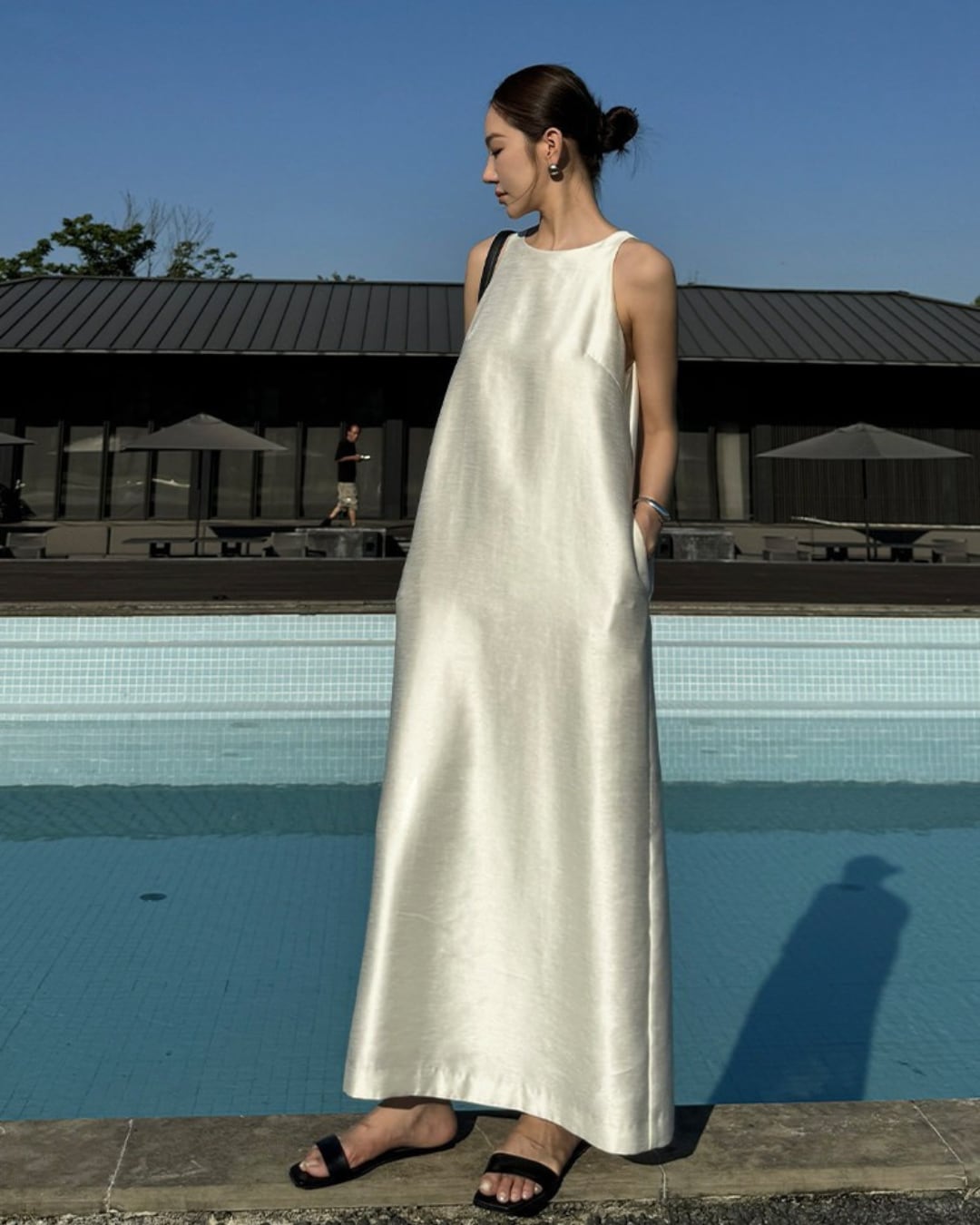 #シンプルコーデ #ミニマルコーデ #ノースリーブワンピース #ロングワンピース #大人コーデ #きれいめコーデ #夜遊び