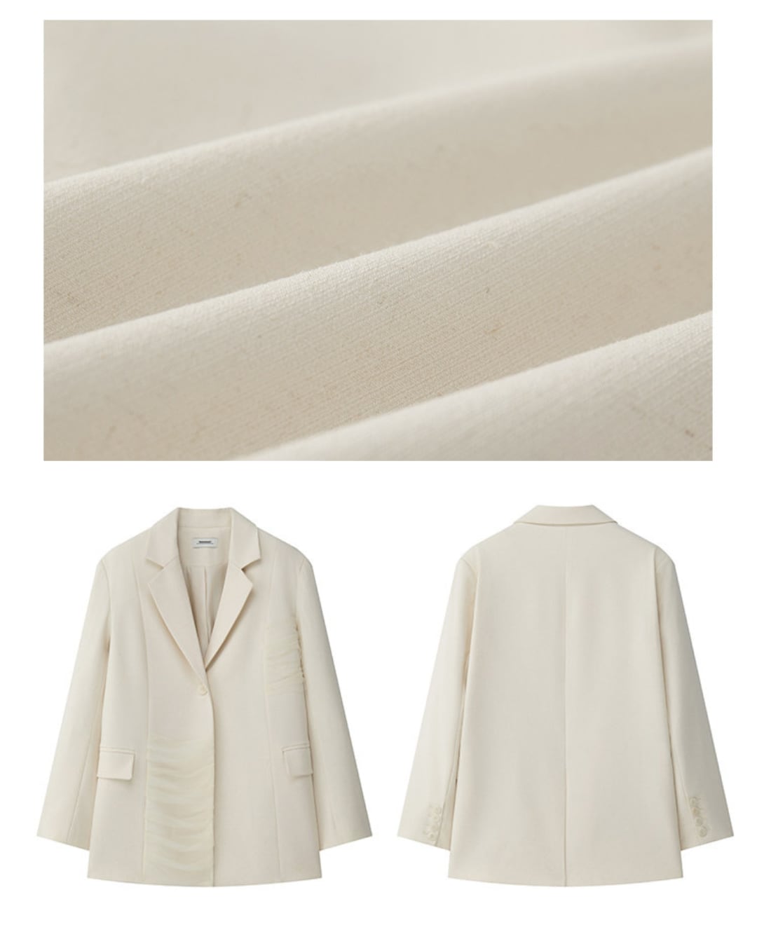 程よくルーズなシルエットが魅力のテーラードジャケット。ナチュラルな風合いのアイボリーカラーで、カジュアルにもきれいめにも合わせやすい一着です。デニムやスカートなど幅広いスタイリングにマッチし、軽やかな抜け感を演出。肩パッド入りでシルエットを美しく見せてくれるのもポイントです。