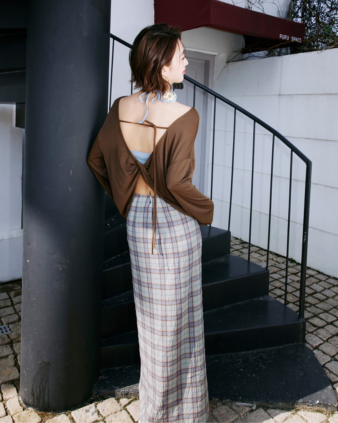 #シアートップス #バックオープン #2wayトップス #リボンデザイン #レイヤードコーデ #大人カジュアル