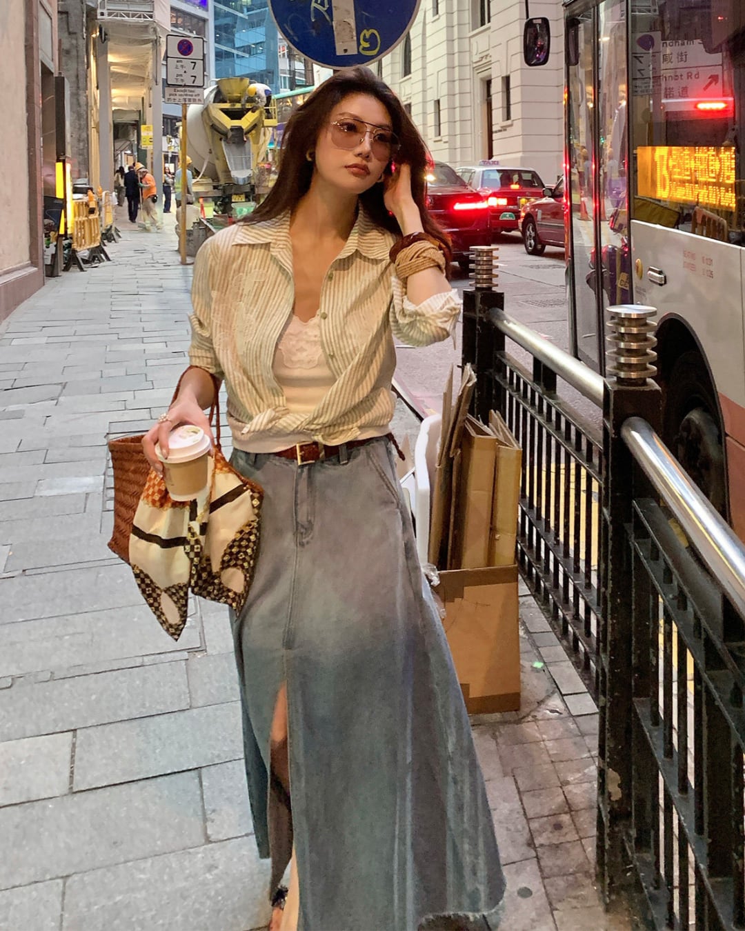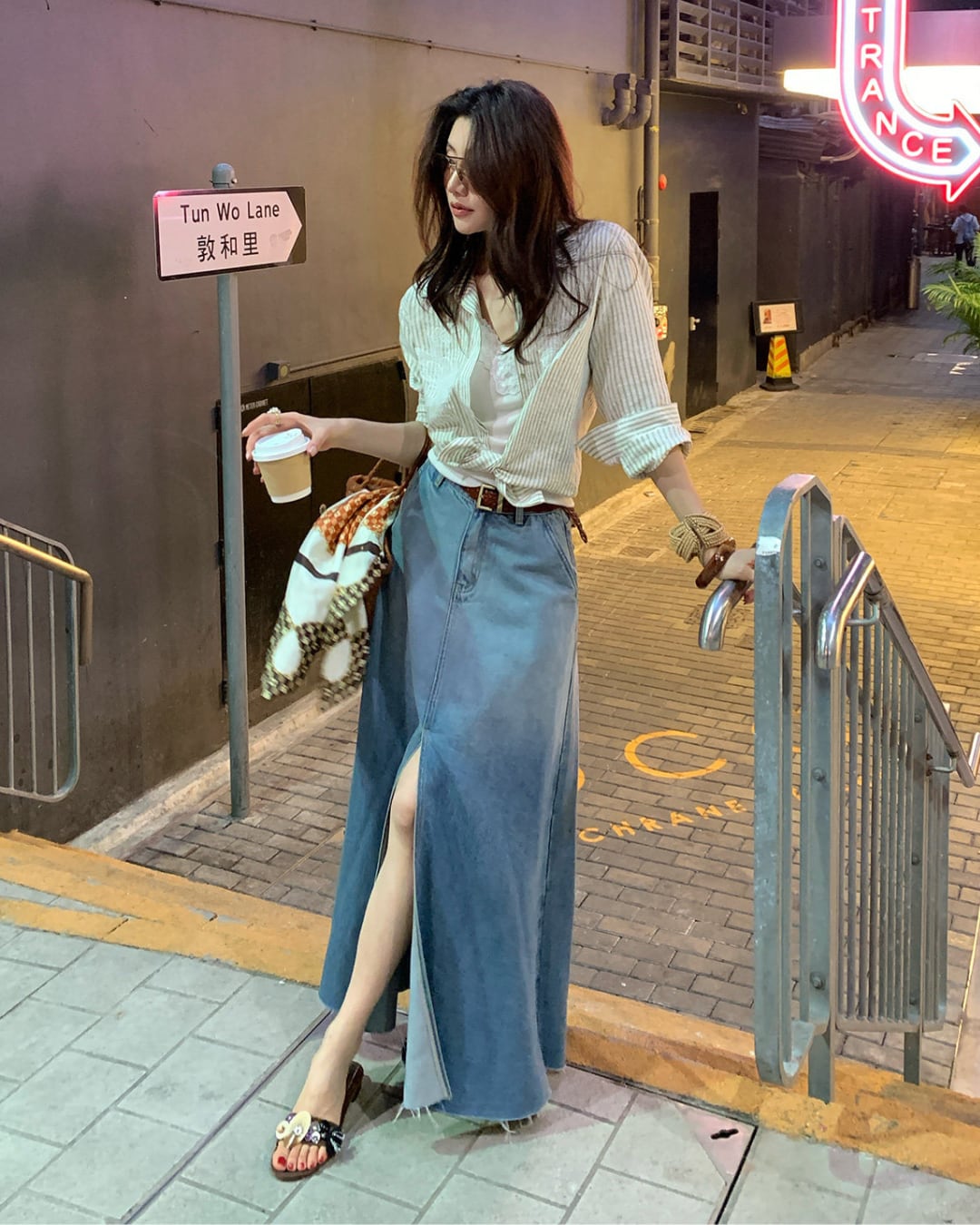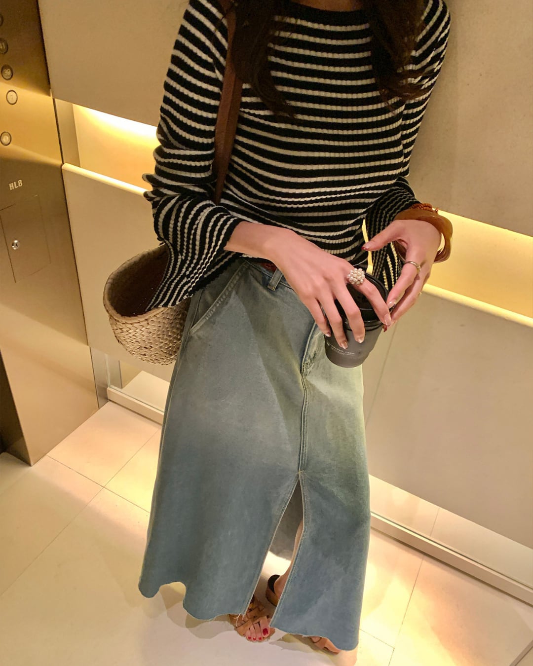 #デニムスカート #ロングスカート #グラデーションデニム #スリットスカート #大人カジュアル #着回しコーデ