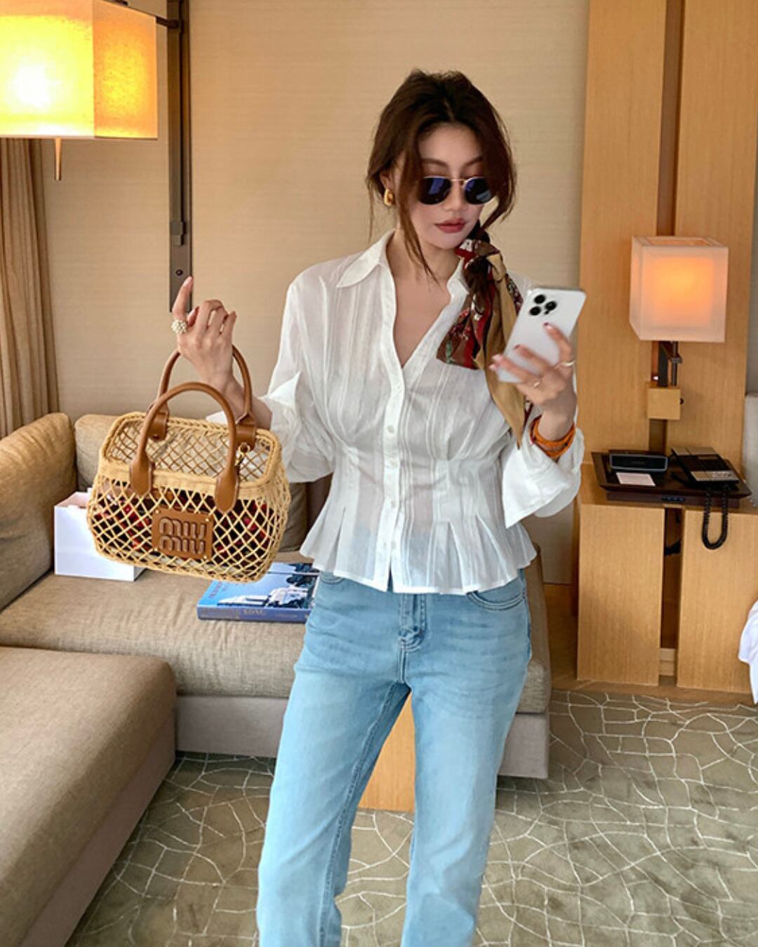 #シャツブラウス #ウエストマーク #プリーツデザイン #スタイルアップ #大人カジュアル #きれいめコーデ
