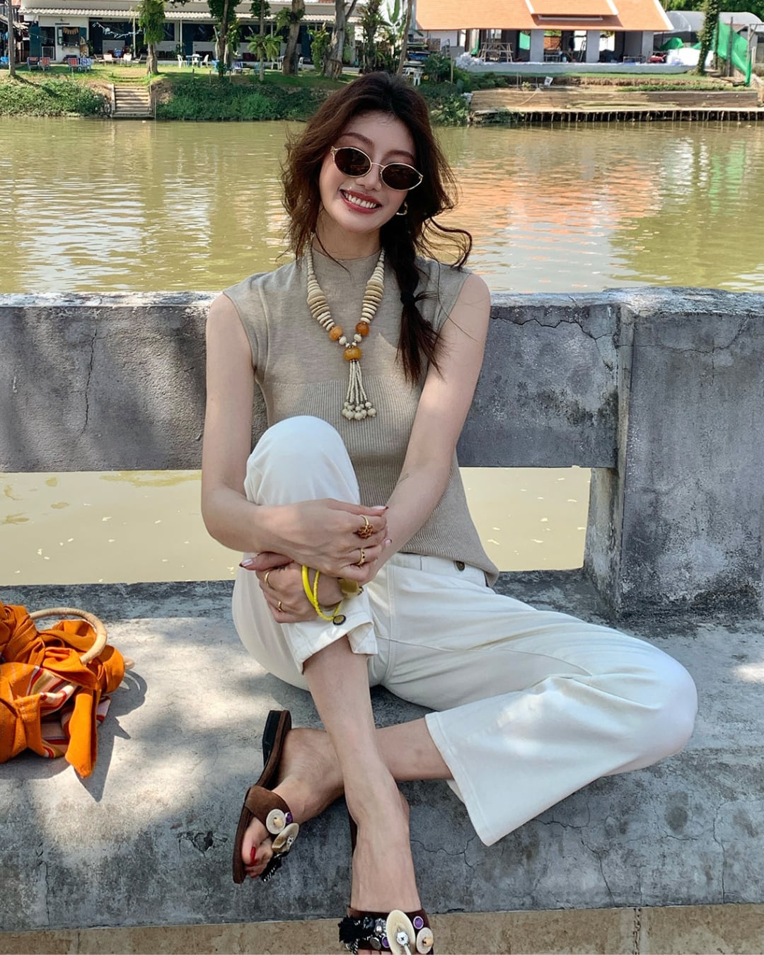 #ノースリーブニット #リブニット #ハイネックトップス #大人カジュアル #きれいめコーデ #着回しコーデ