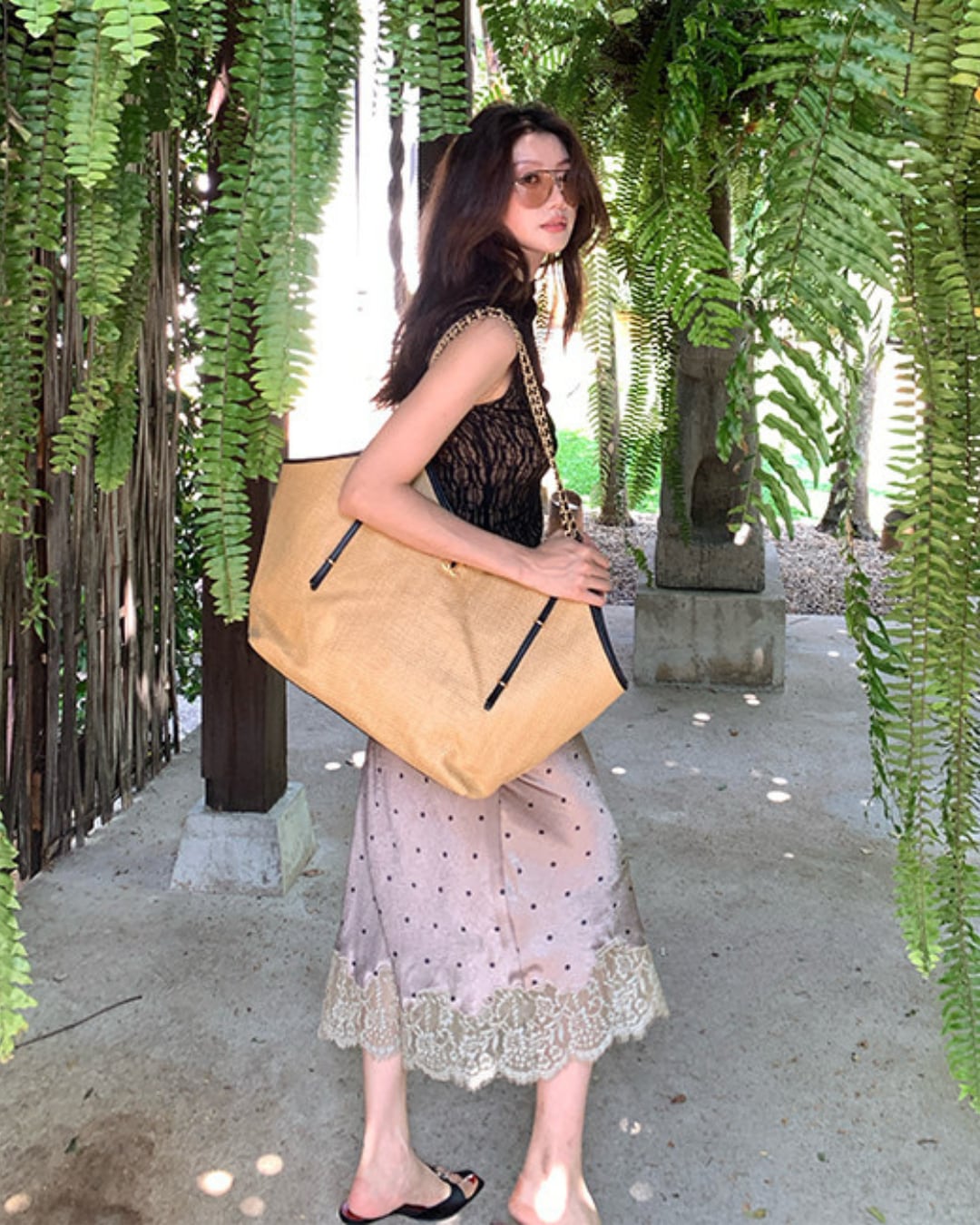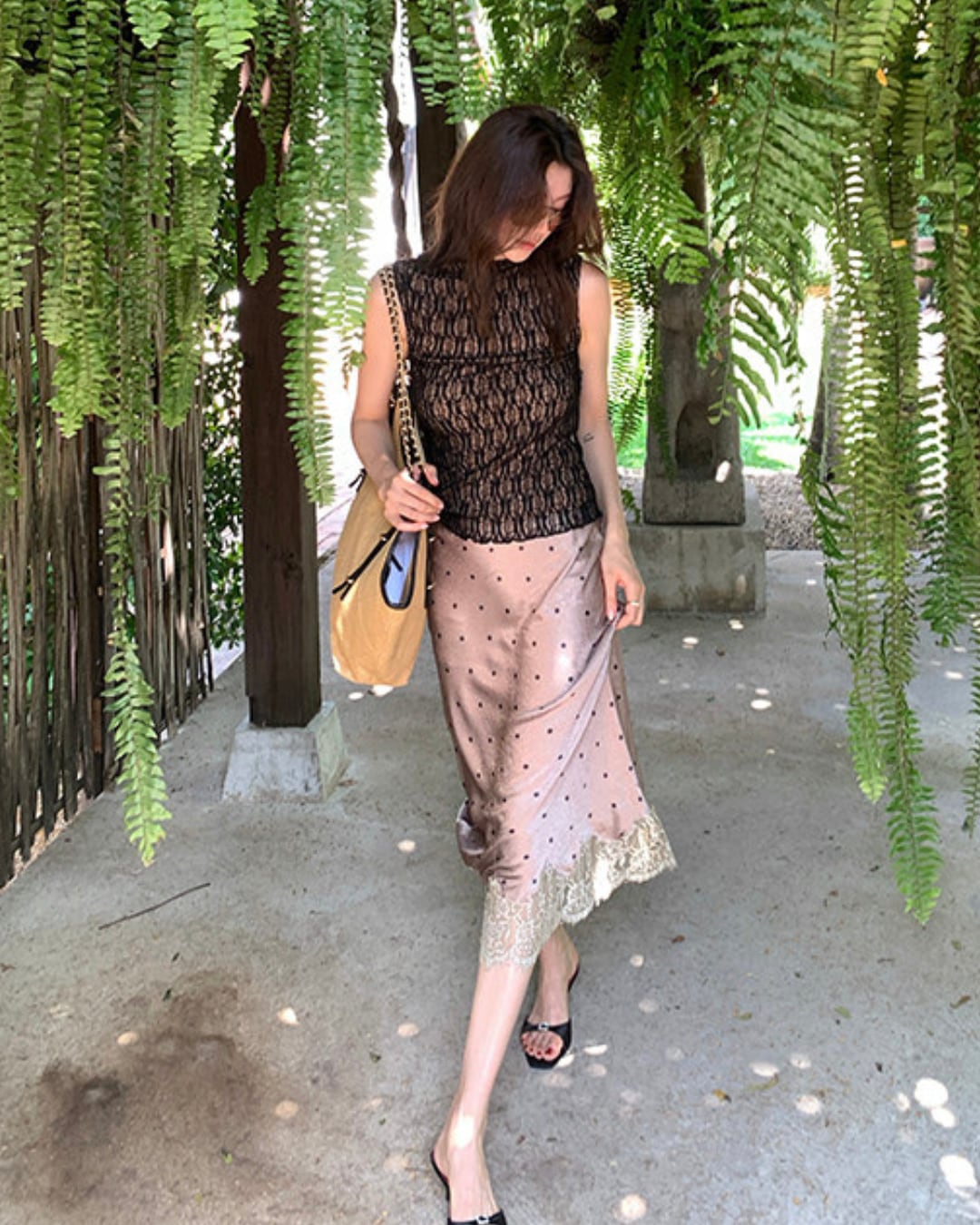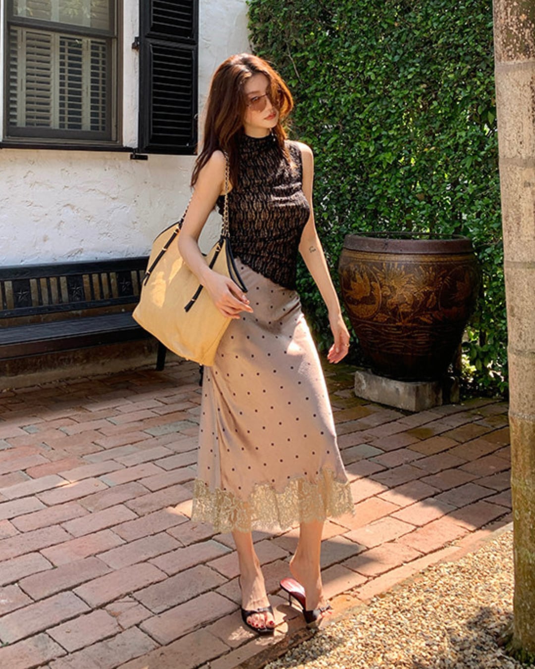 #レーストップス #シアートップス #ノースリーブトップス #ハイネックトップス #大人フェミニン #きれいめコーデ