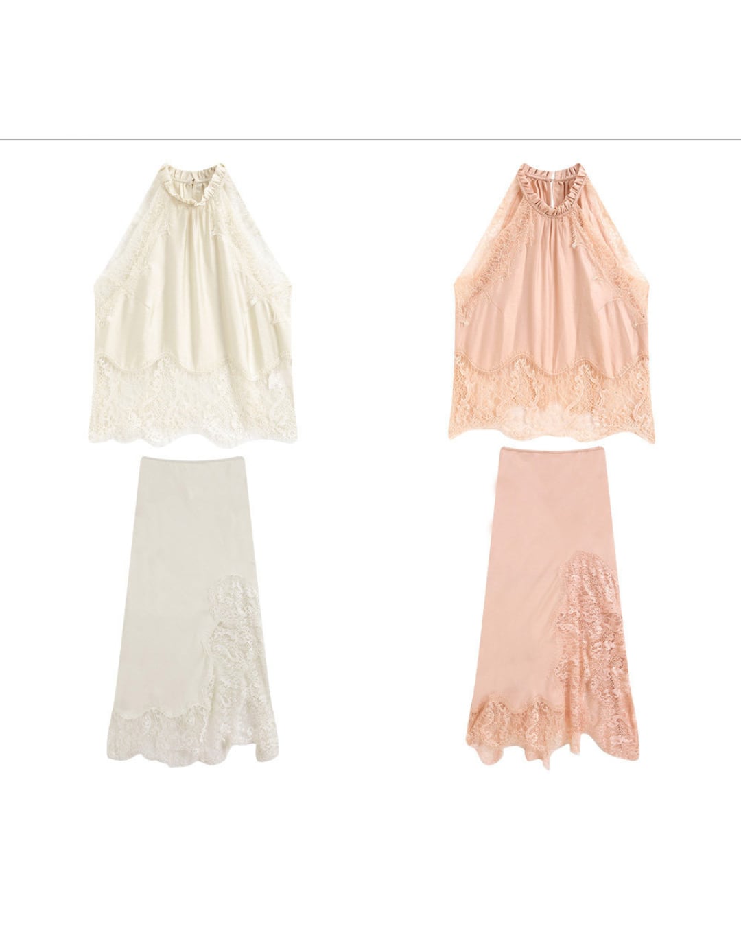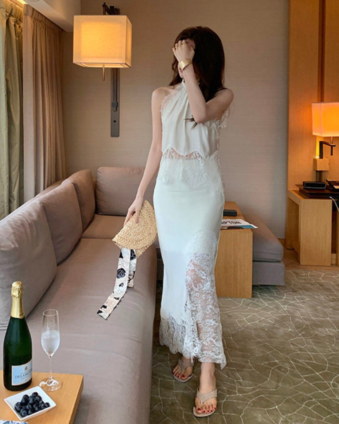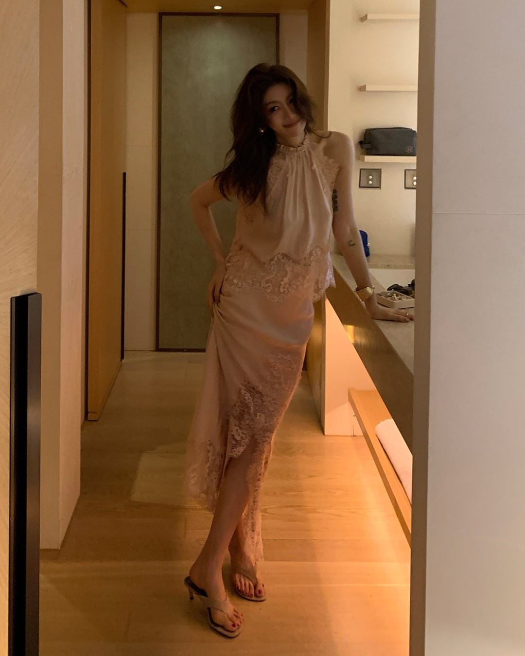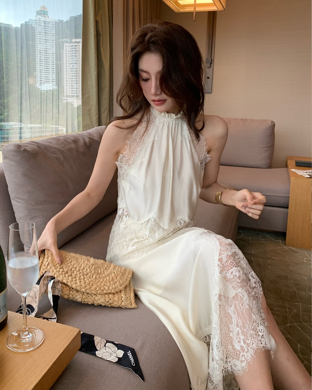 #セットアップ #レーストップス #ロングスカート #ホルターネック #大人フェミニン #韓国ファッション #上品コーデ