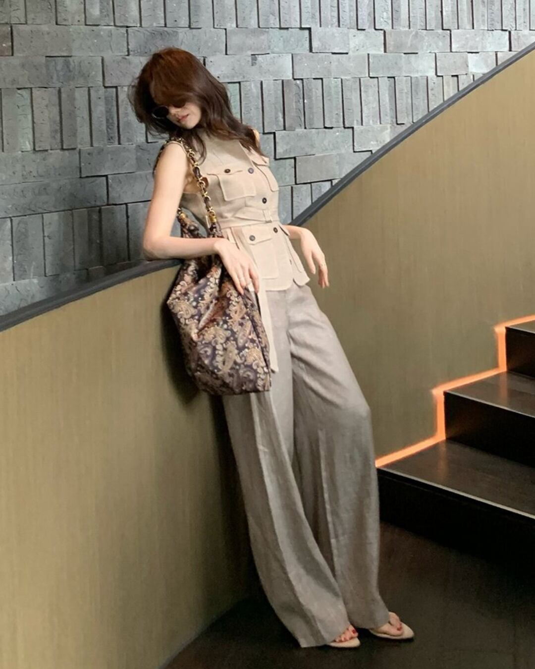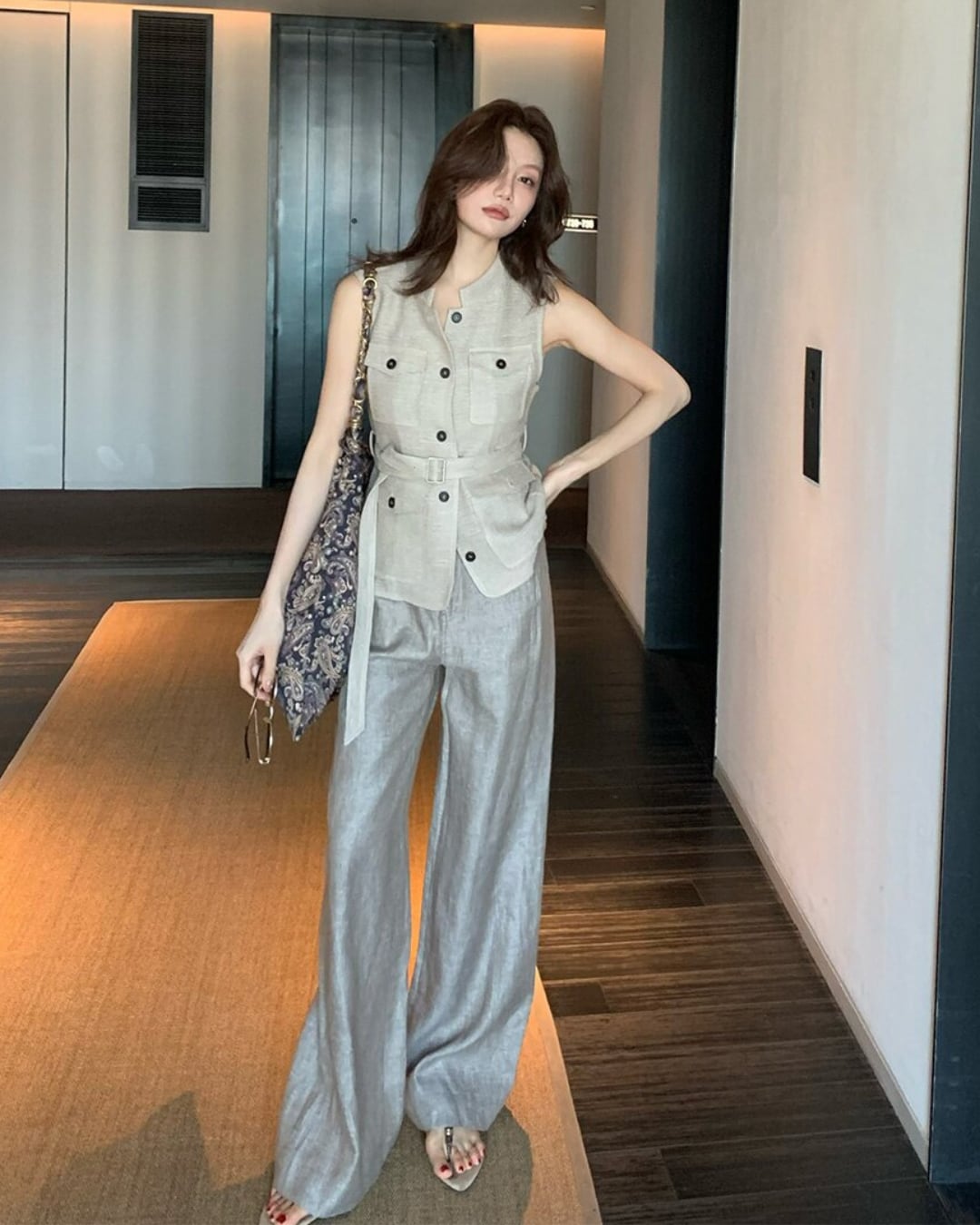 #ジレ #ベスト #ノースリーブジャケット #リネンライク #大人カジュアル #きれいめコーデ #春夏コーデ