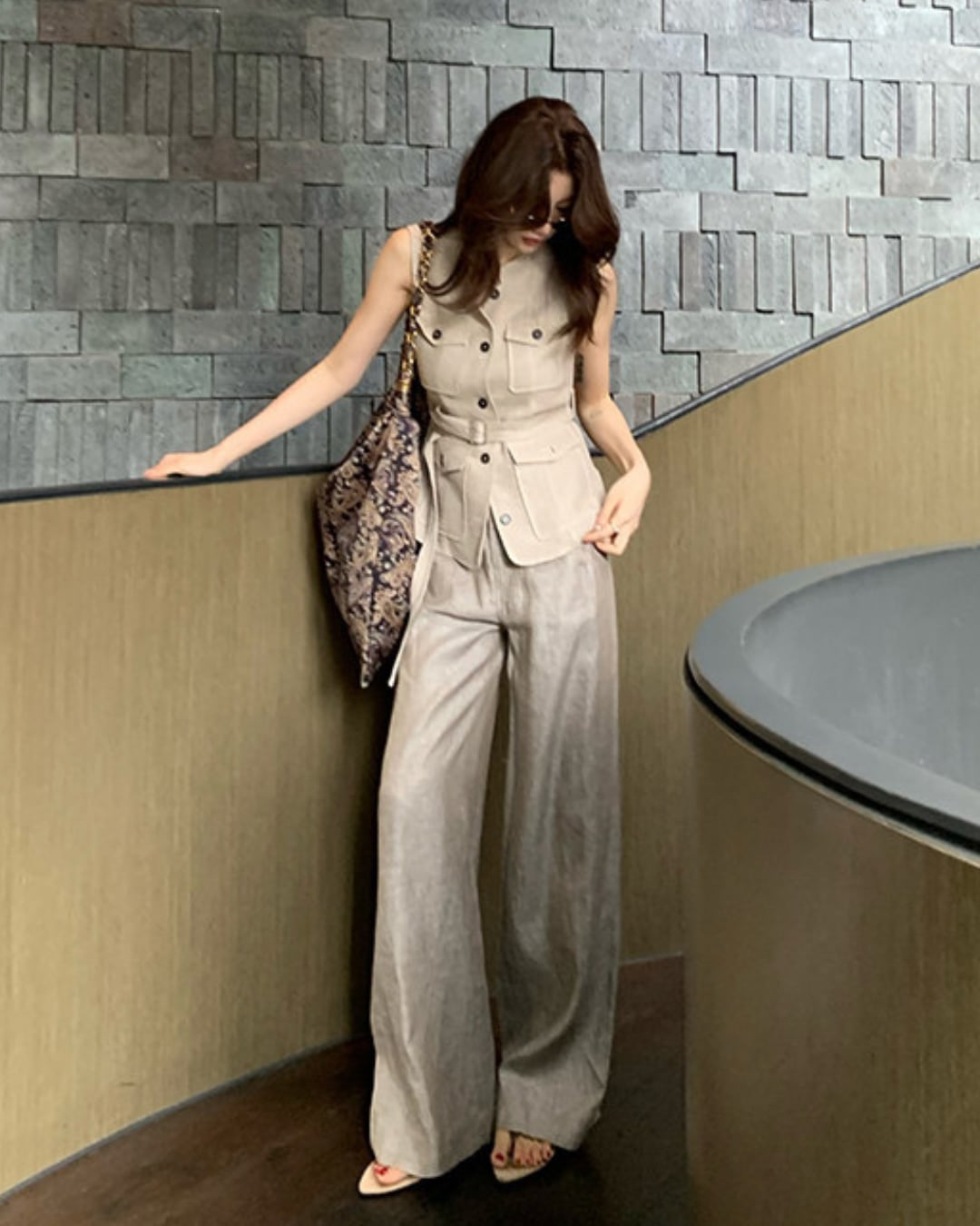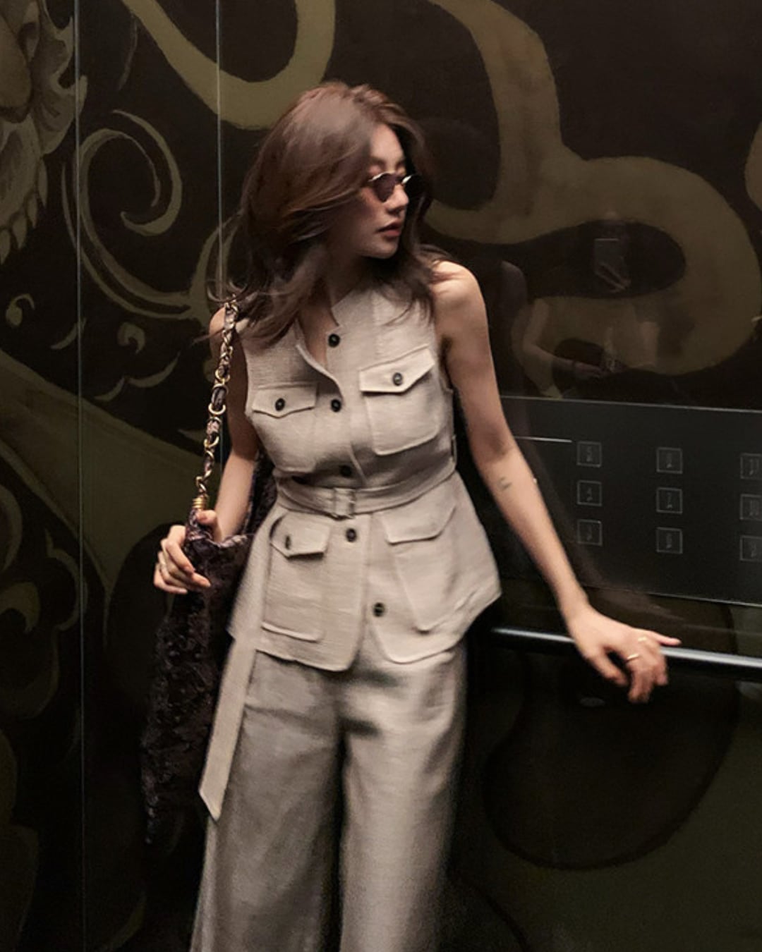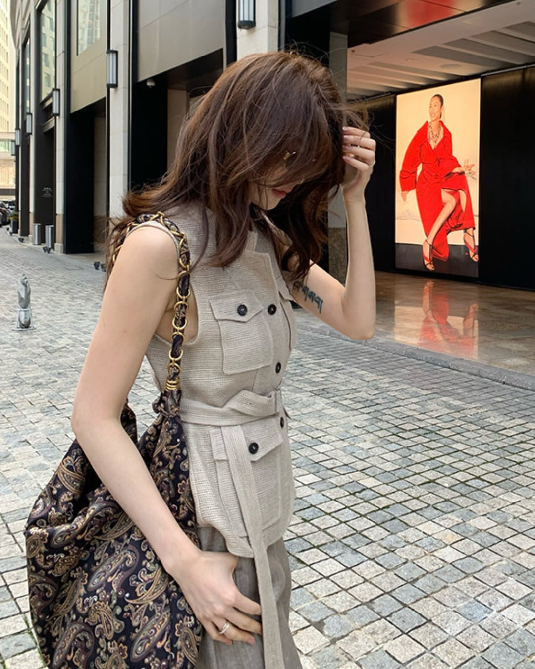 ナチュラルな風合いと洗練されたシルエットが魅力のノースリーブジレ。立体感のあるポケットデザインとウエストベルトがアクセントになり、シンプルながら存在感のある一着です。程よくウエストマークできるデザインで、スタイルアップ効果も◎パンツ合わせで大人カジュアルに、ワンピースの上に羽織ってレイヤードスタイルにもおすすめです。