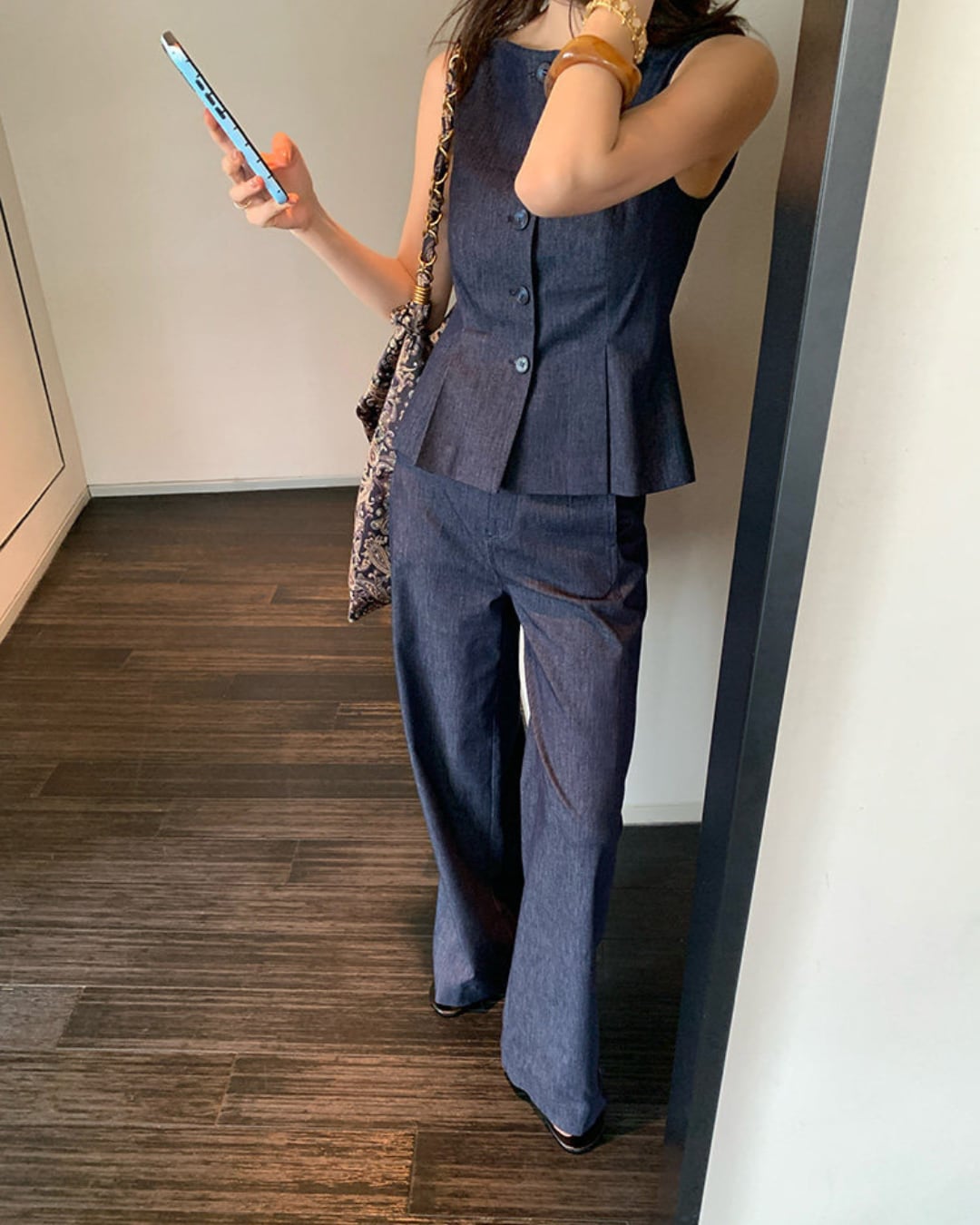 #セットアップ #ノースリーブトップス #ギンガムチェック #デニムコーデ #きれいめコーデ #大人カジュアル #スタイルアップ