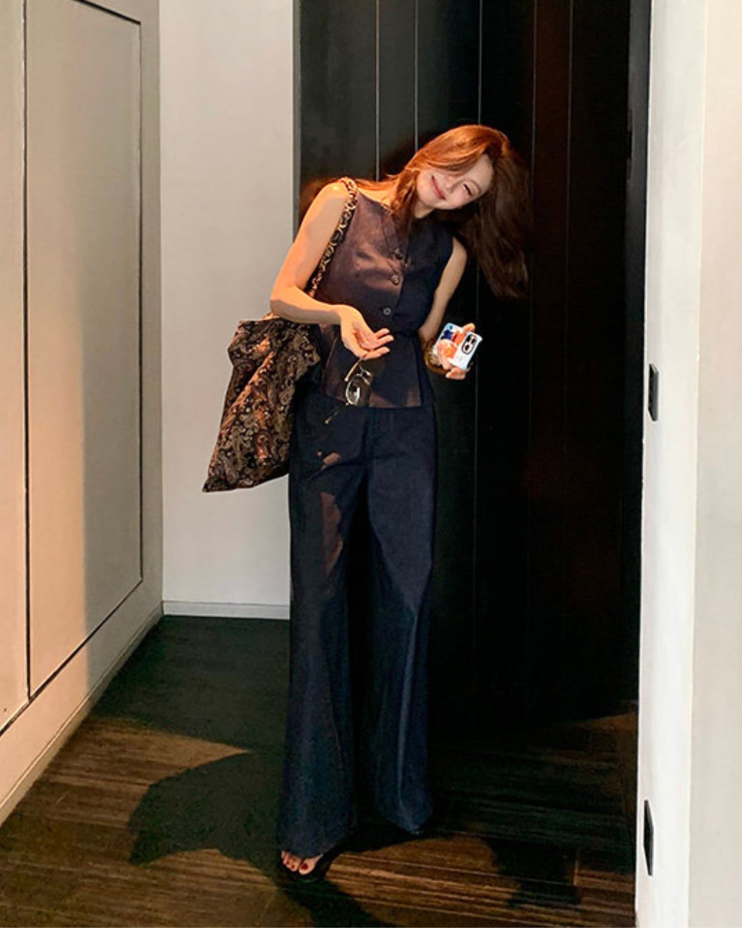 立体的なウエストラインが美しいノースリーブトップスは、1枚でスタイルアップが叶う主役デザイン。すっきりと落ちるストレートパンツと合わせることで、縦ラインを強調しスマートな印象に仕上げてくれます。トップスは、オンオフ問わず活躍する万能アイテムです。