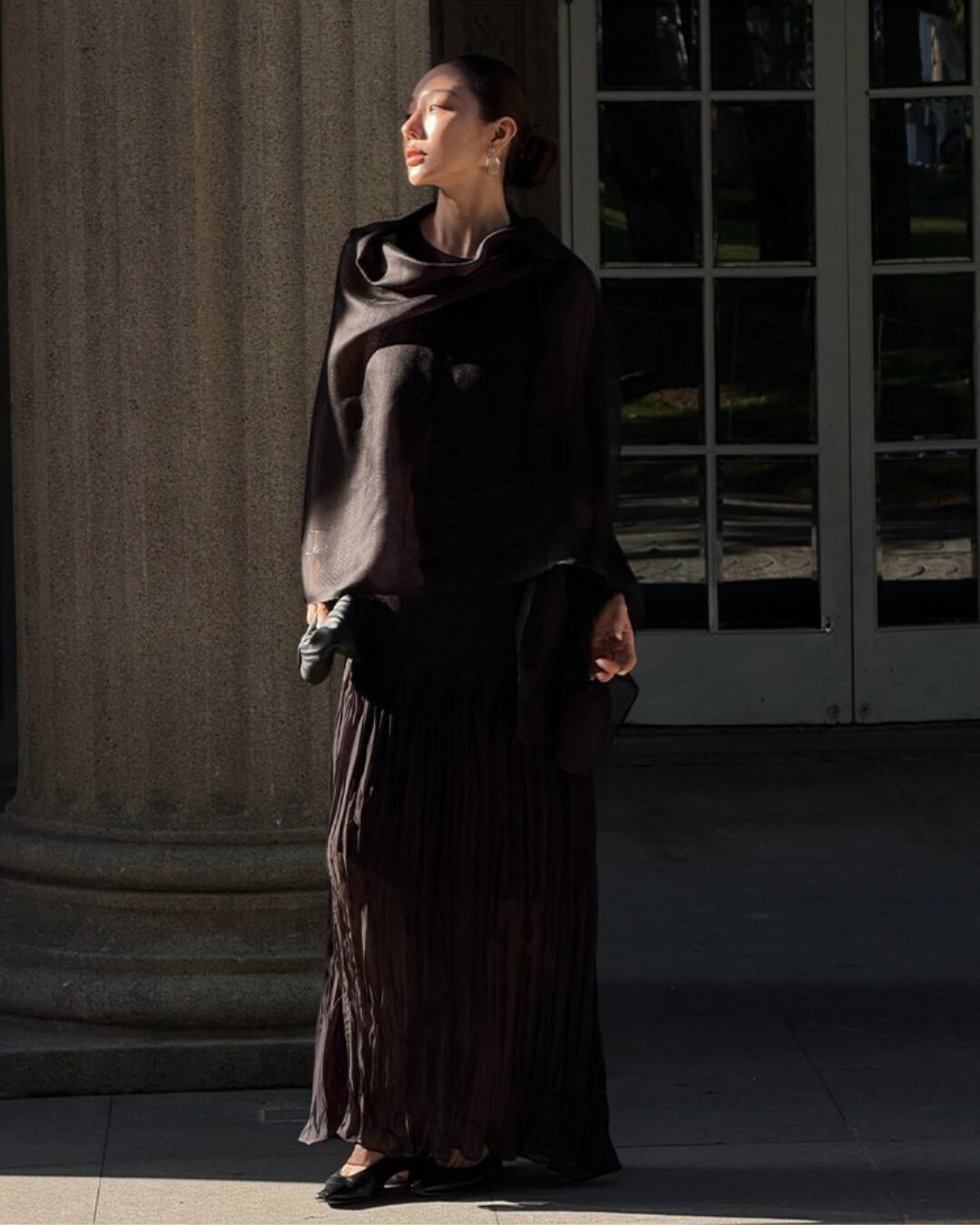 #ロングワンピース #シアーワンピース #プリーツワンピース #ブラックワンピース #大人モード #上品コーデ #セレクトエレガント #パーティー #セレクトグレース