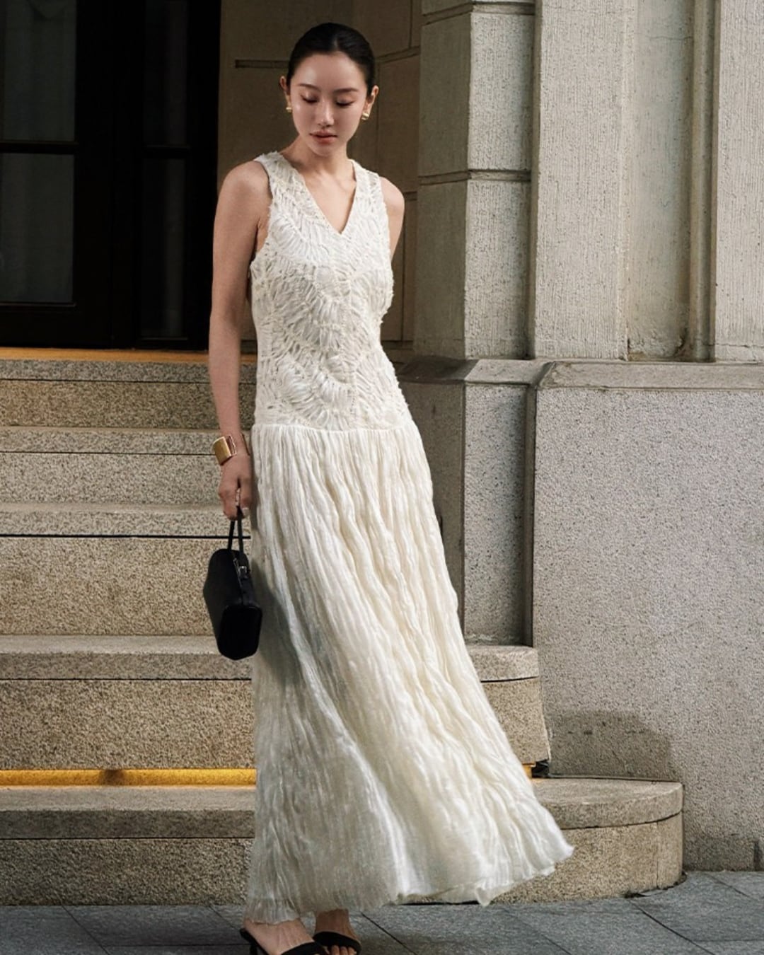 #ロングワンピース #Vネックワンピース #プリーツワンピース #ジャガードワンピース #上品コーデ #大人フェミニン #セレクトエレガント #パーティー #セレクトグレース