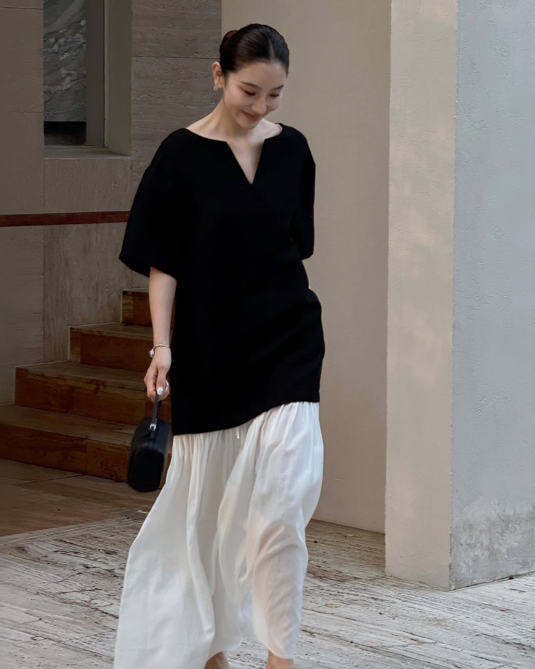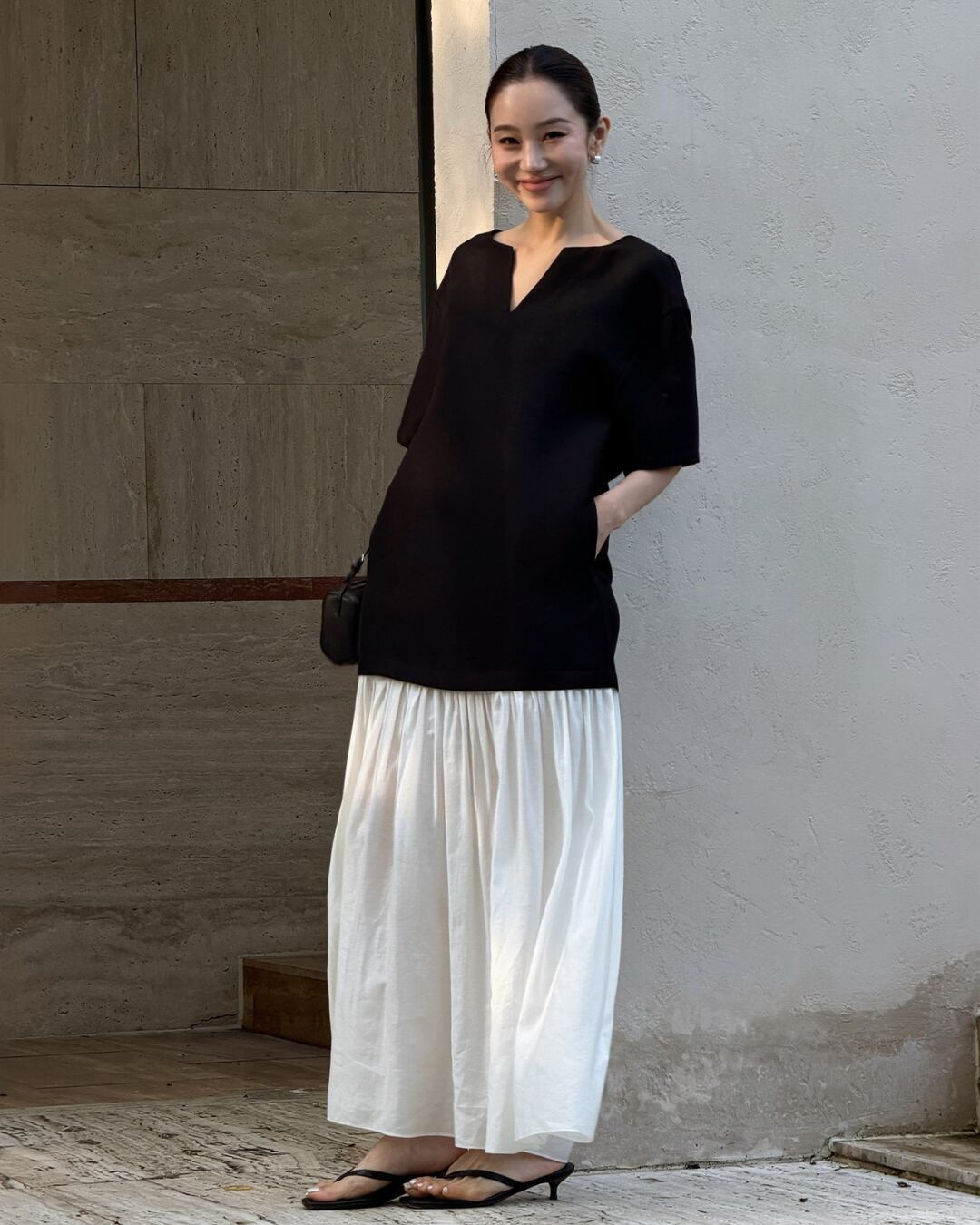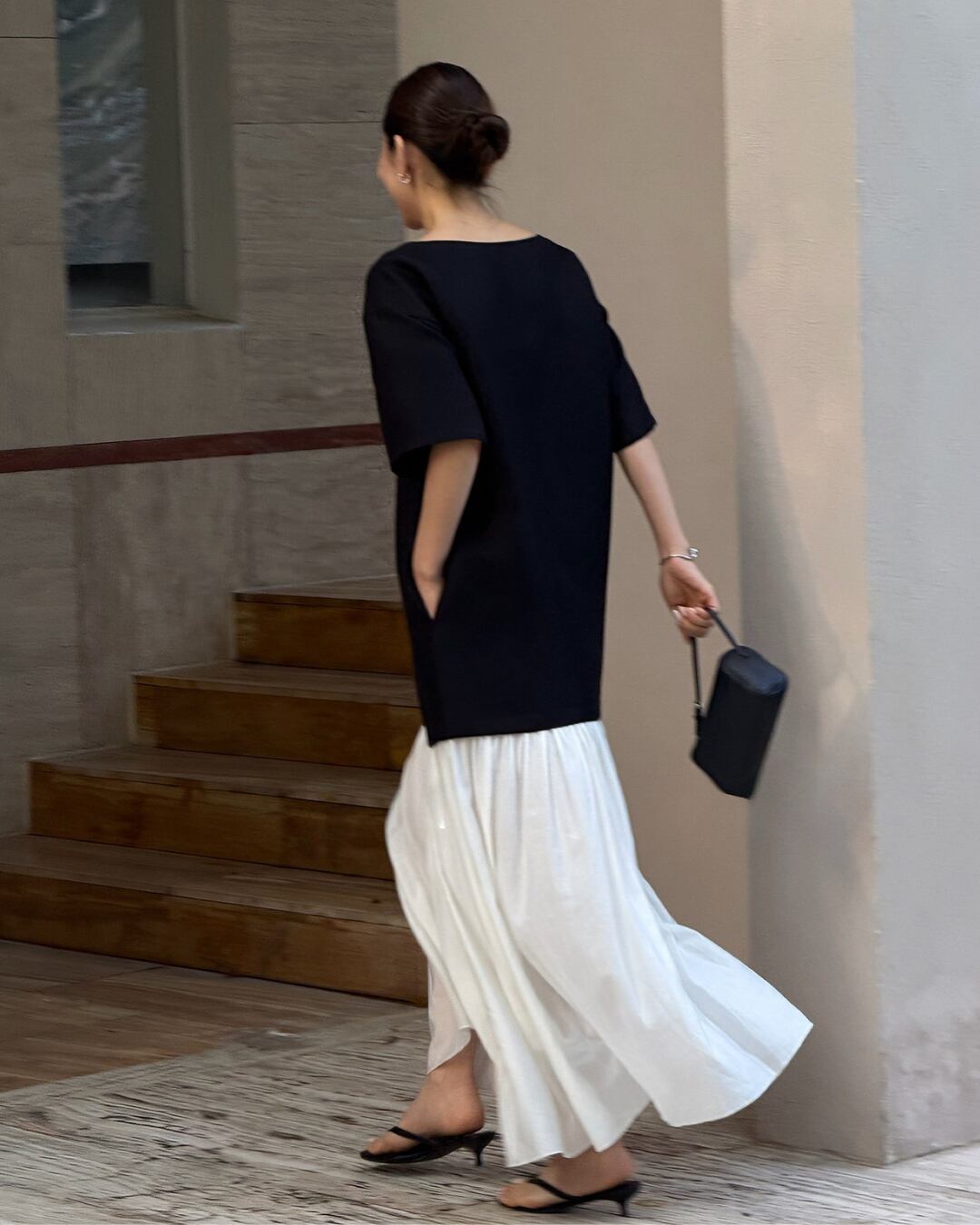 #ロングワンピース #ドッキングワンピース #バイカラーワンピース #スキッパーワンピース #大人カジュアル #モノトーンコーデ #セレクトエレガント #セレクトグレース