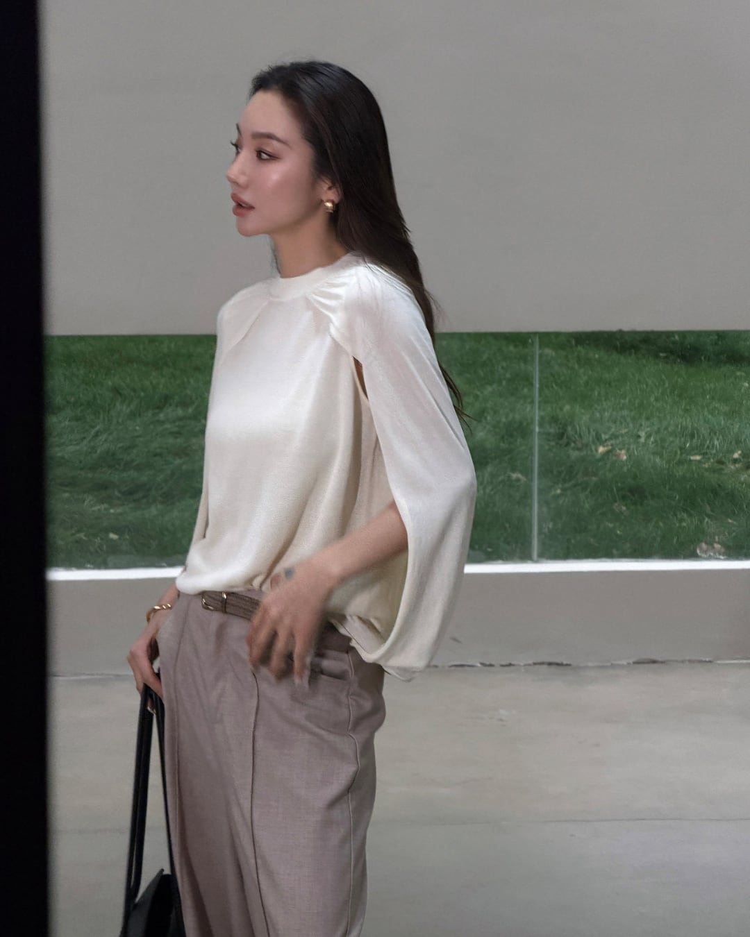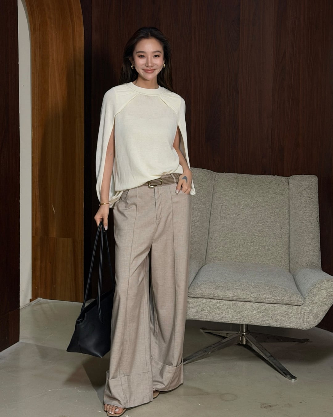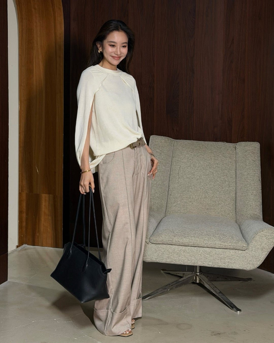 #ニットトップス #シアーニット #ケープスリーブ #上品コーデ #大人フェミニン #きれいめカジュアル #セレクトエレガント #セレクトグレース