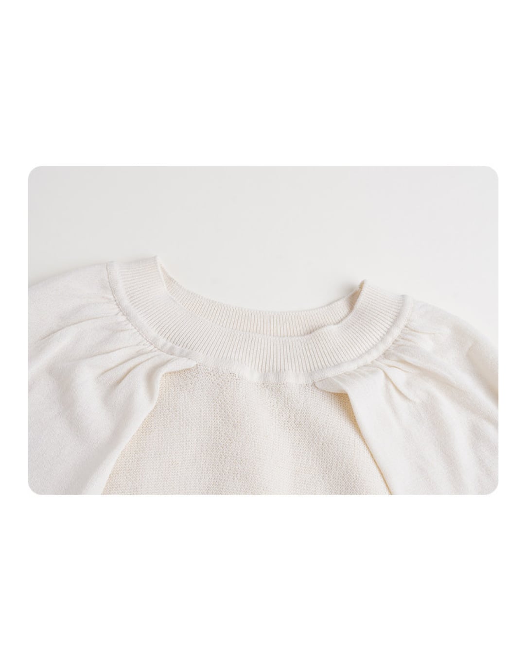 動くたびに揺れるケープスリーブデザインが印象的なニットトップス。肩まわりに施されたギャザーディテールが女性らしさを引き立て、軽やかなシアー素材で上品な抜け感を演出します。1枚で華やかに決まり、きれいめから大人カジュアルまで幅広く活躍する主役トップスです。