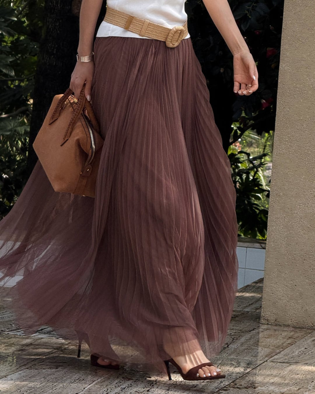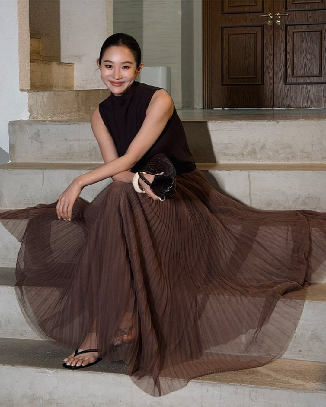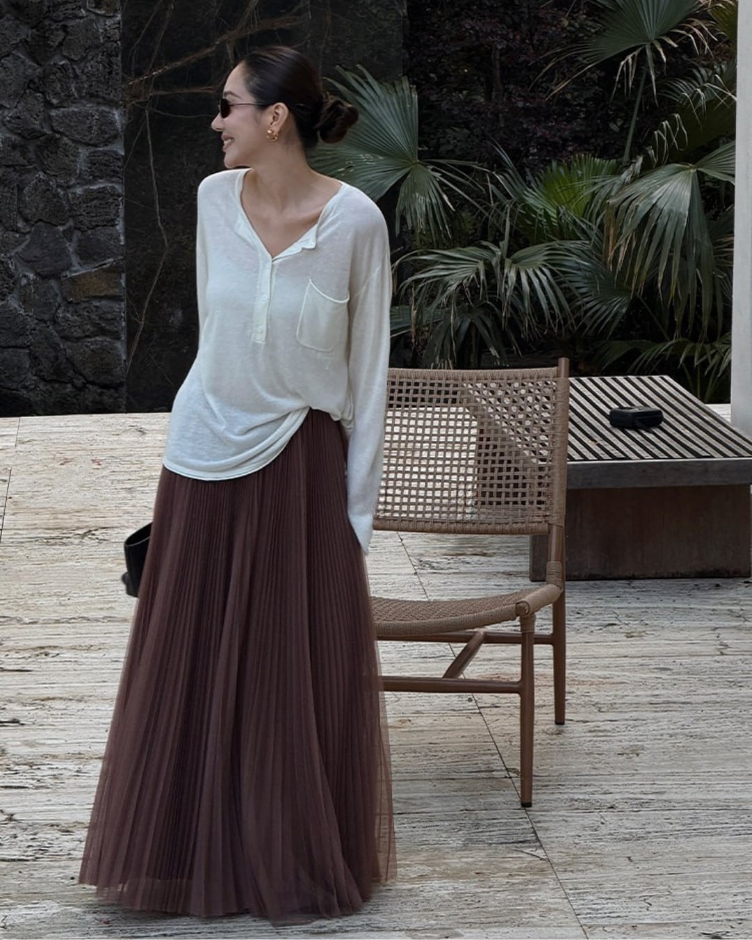 #チュールスカート #プリーツスカート #ロングスカート #大人フェミニン #きれいめコーデ #ブラウンコーデ #セレクトエレガント #セレクトグレース