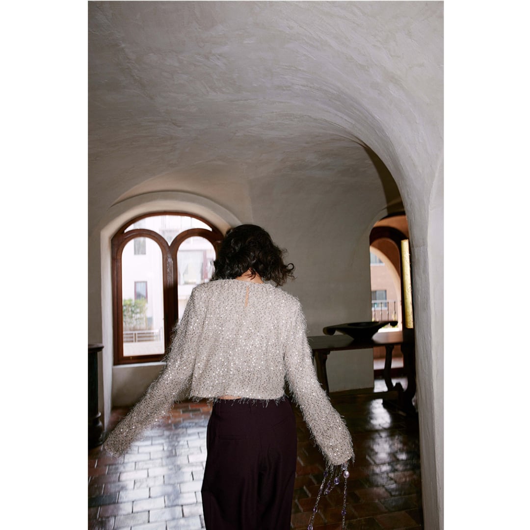 輝くスパンコールが華やかさを演出するトップス。パーティーやイベントにはもちろん、普段のコーディネートにも一味違うアクセントを与えます。心に輝きを灯すトップスで、日常に華やかさをプラスしてみませんか?