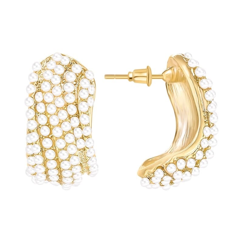 上品な輝きが魅力のウェーブパールピアス。輝きを放つパールが女性の耳元を華やかに彩ります。繊細なデザインながら存在感もあり、カジュアルからドレッシーまで、幅広いスタイルにマッチします。